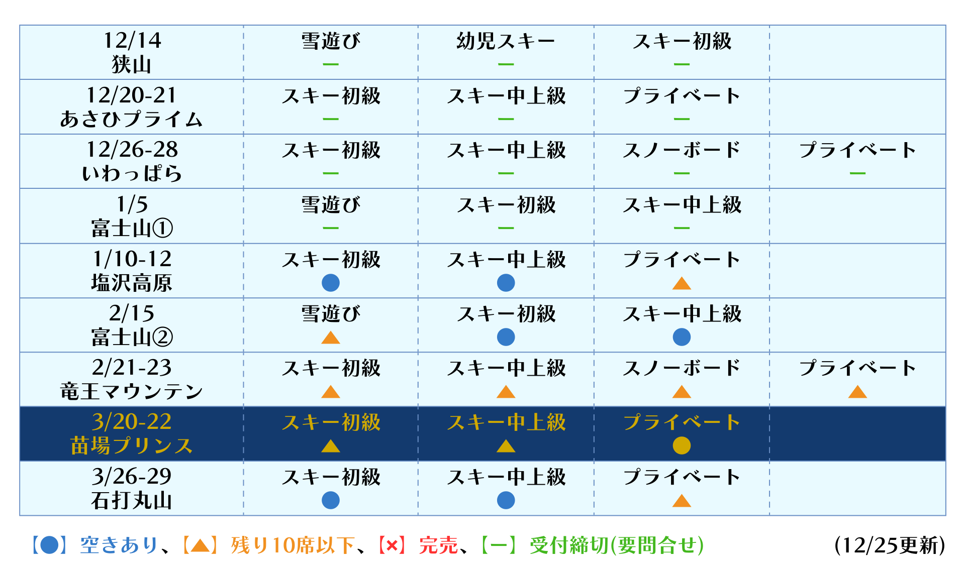 実施判断はスクール開始1時間前に決定いたしますので、WEBサイトよりご確認ください。