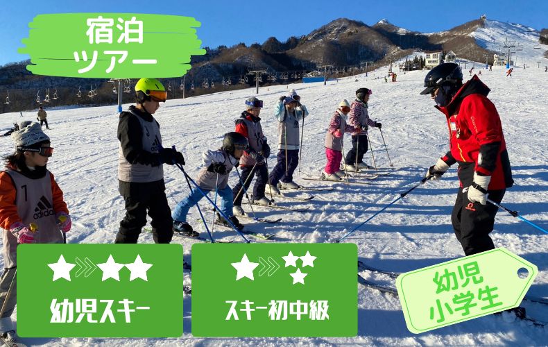 スキーは上達したいけど、お泊りが少し不安な幼児・低学年のお子様におすすめのコースです。