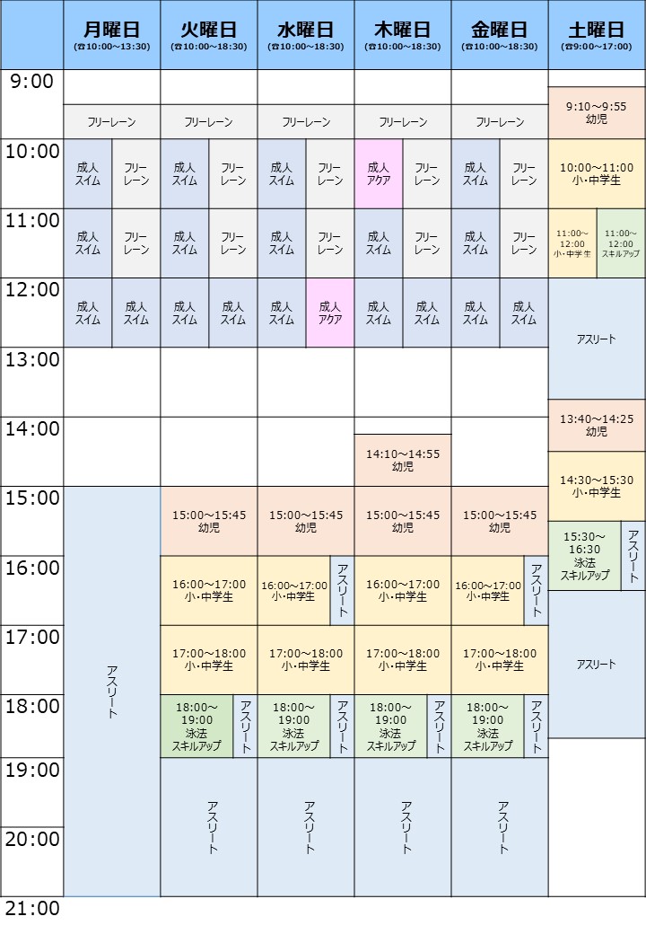 ※成人スイミング:別途費用なくフリーレーンもご利用いただけます。