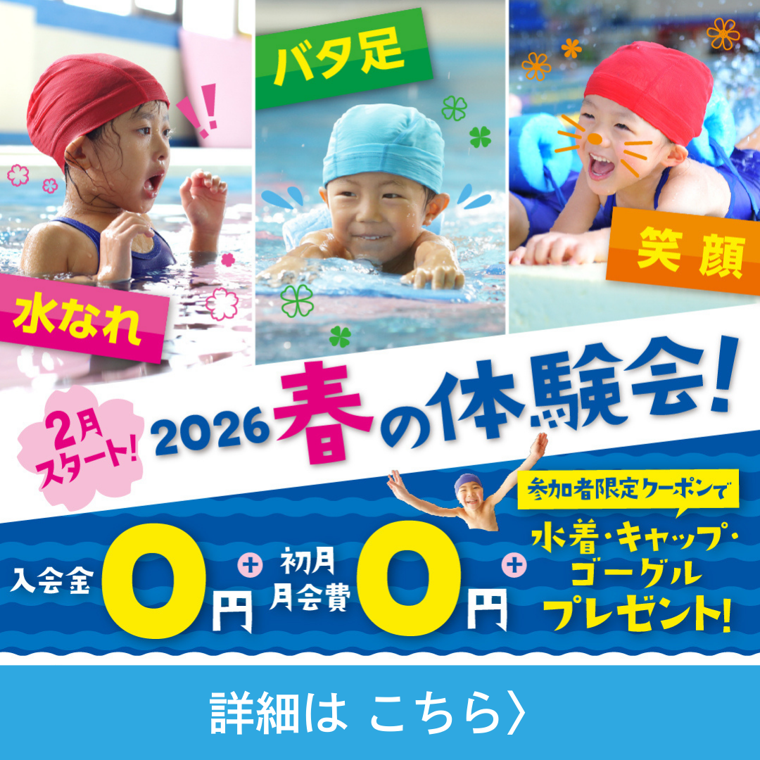 【スイミング】水着とタオルをご用意ください。※水泳キャップは体験用をご用意しております。