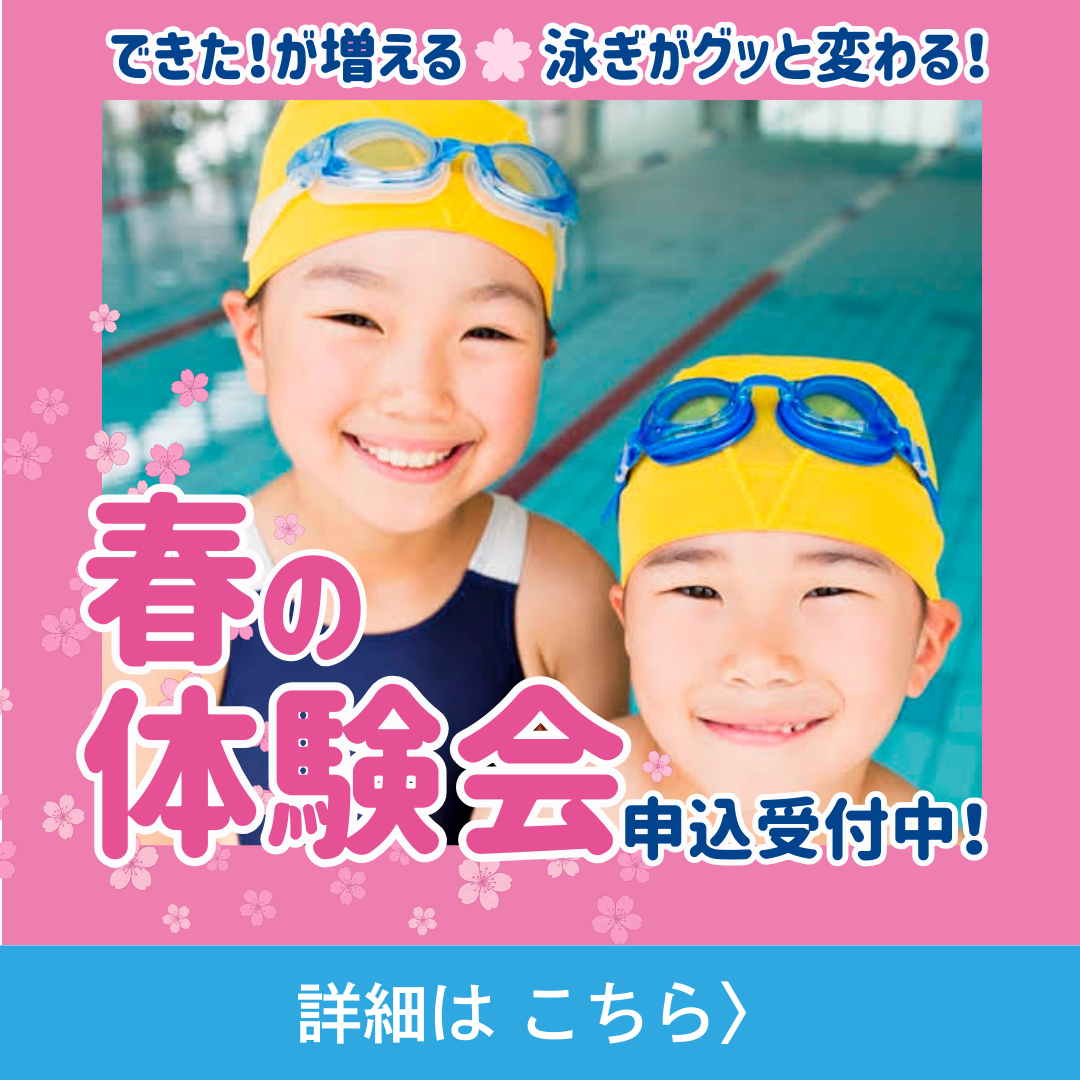 【スイミング】水着とタオルをご用意ください。※水泳キャップは体験用をご用意しております。