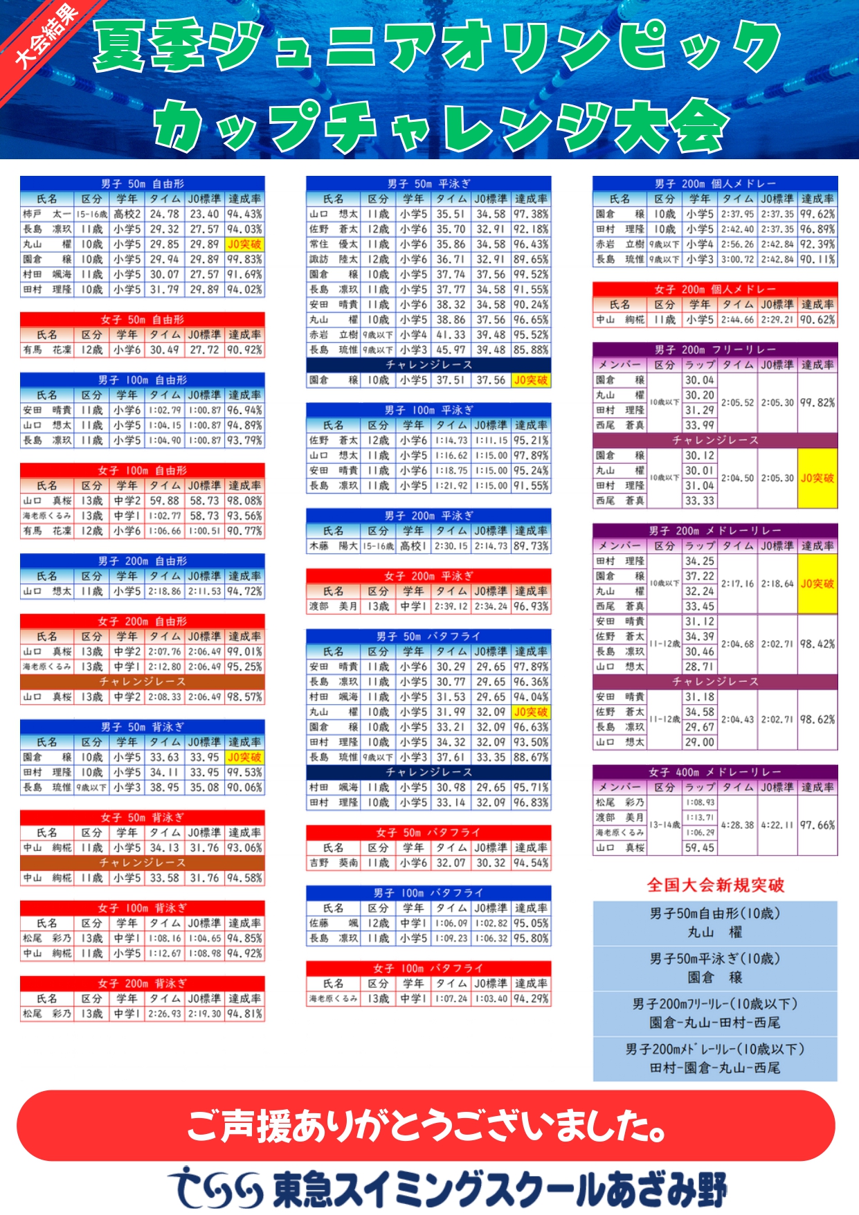 新規夏季JO(全国大会)標準記録突破者