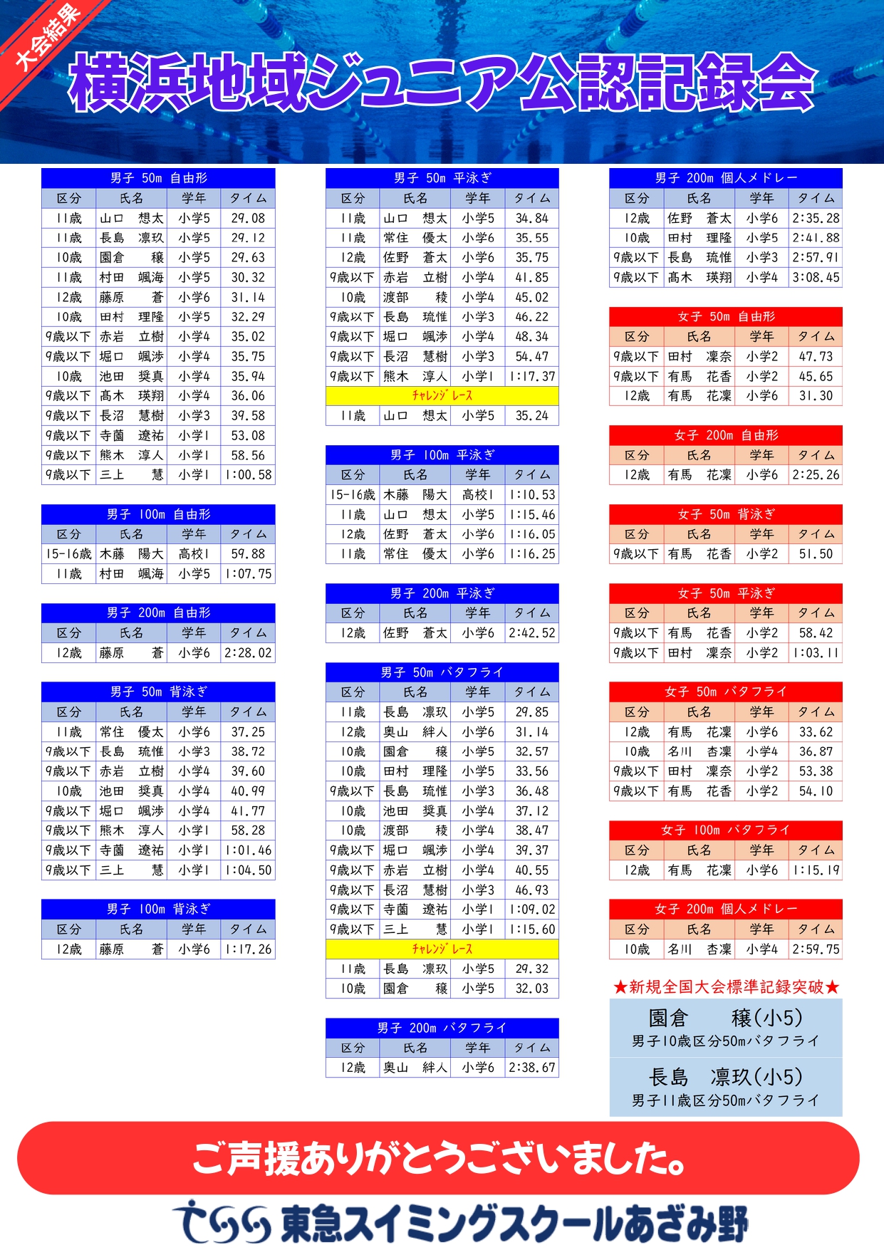 【神奈川県】横浜地域ジュニア公認記録会 結果