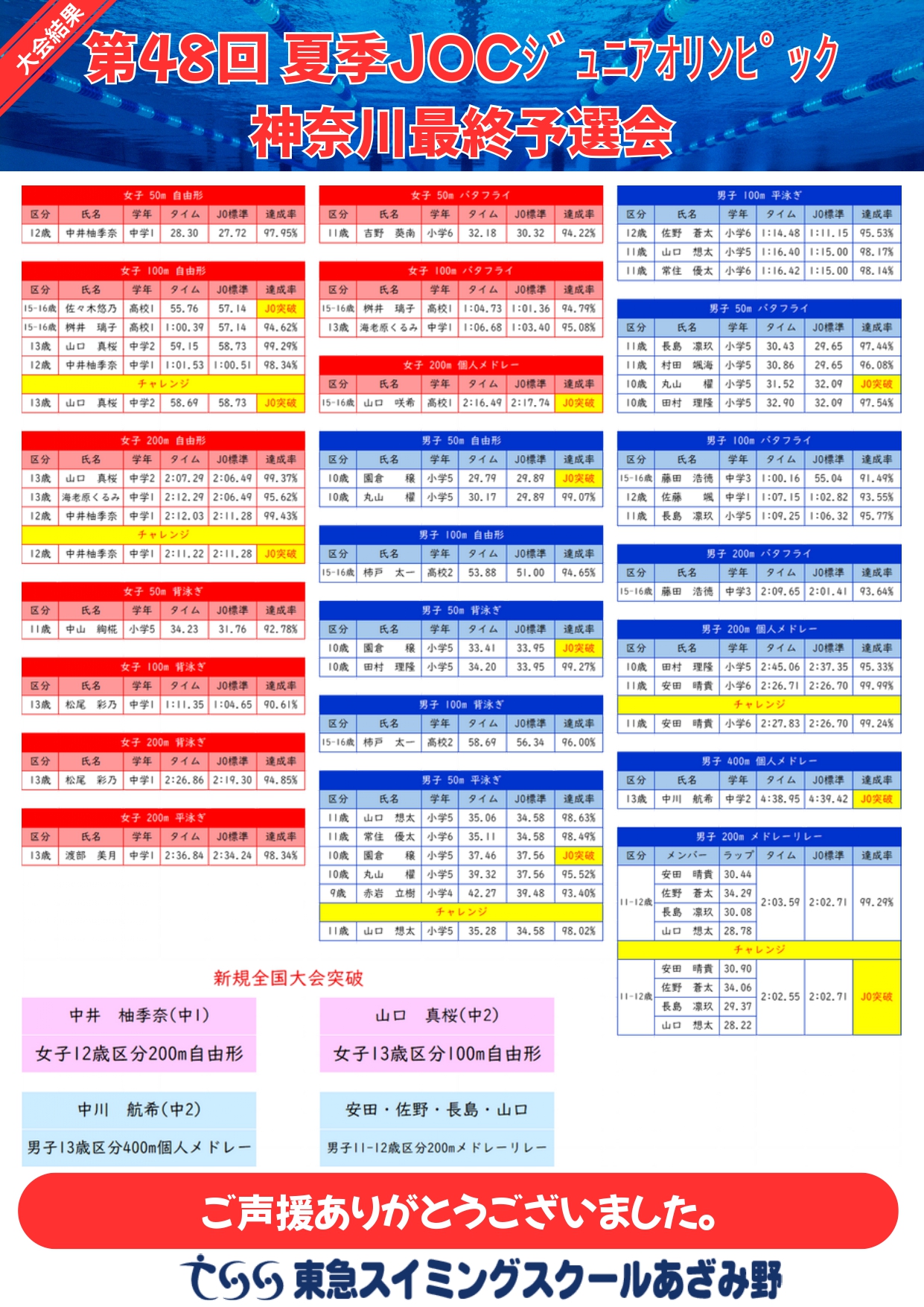 【神奈川県】第48回 夏季JOCジュニアオリンピック神奈川最終予選会 結果