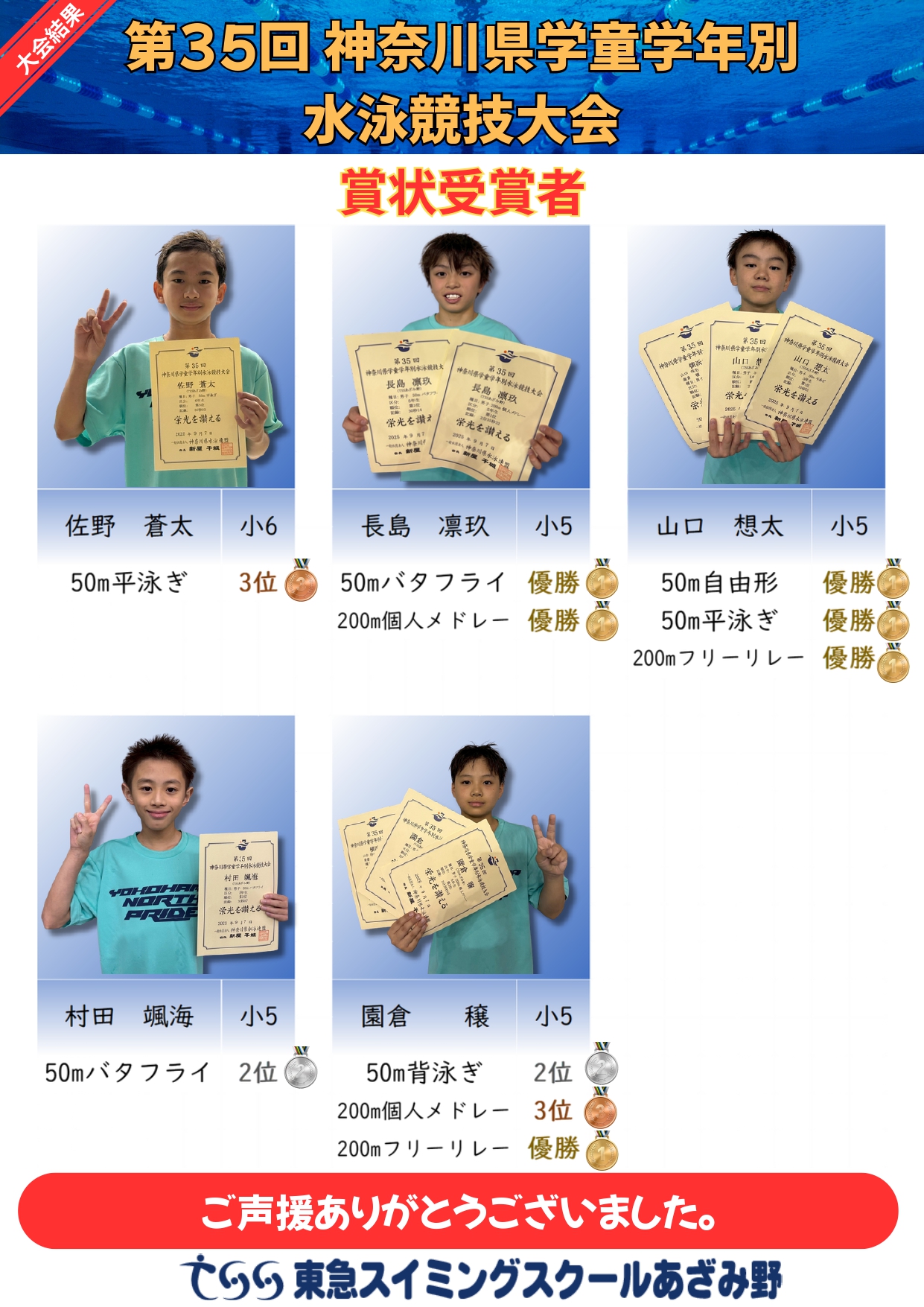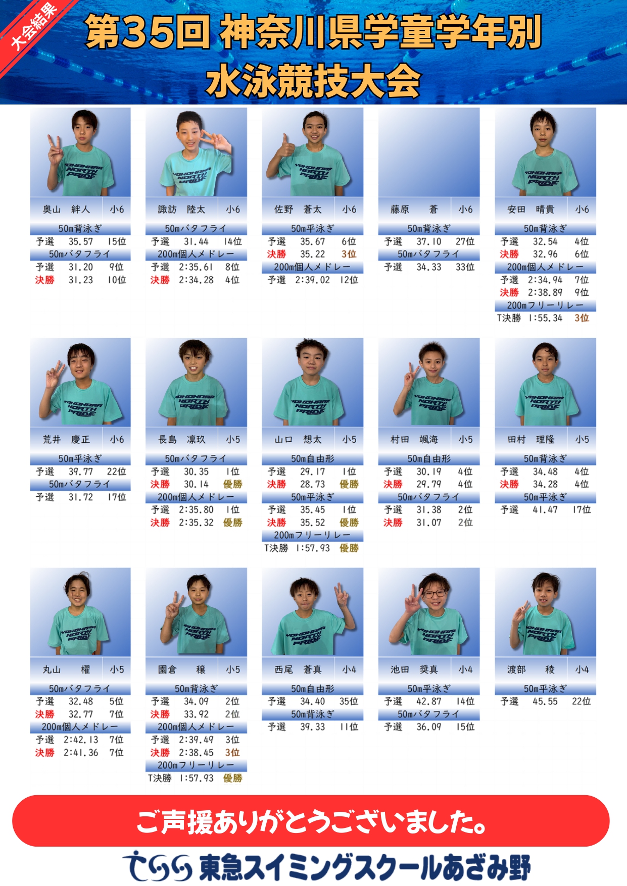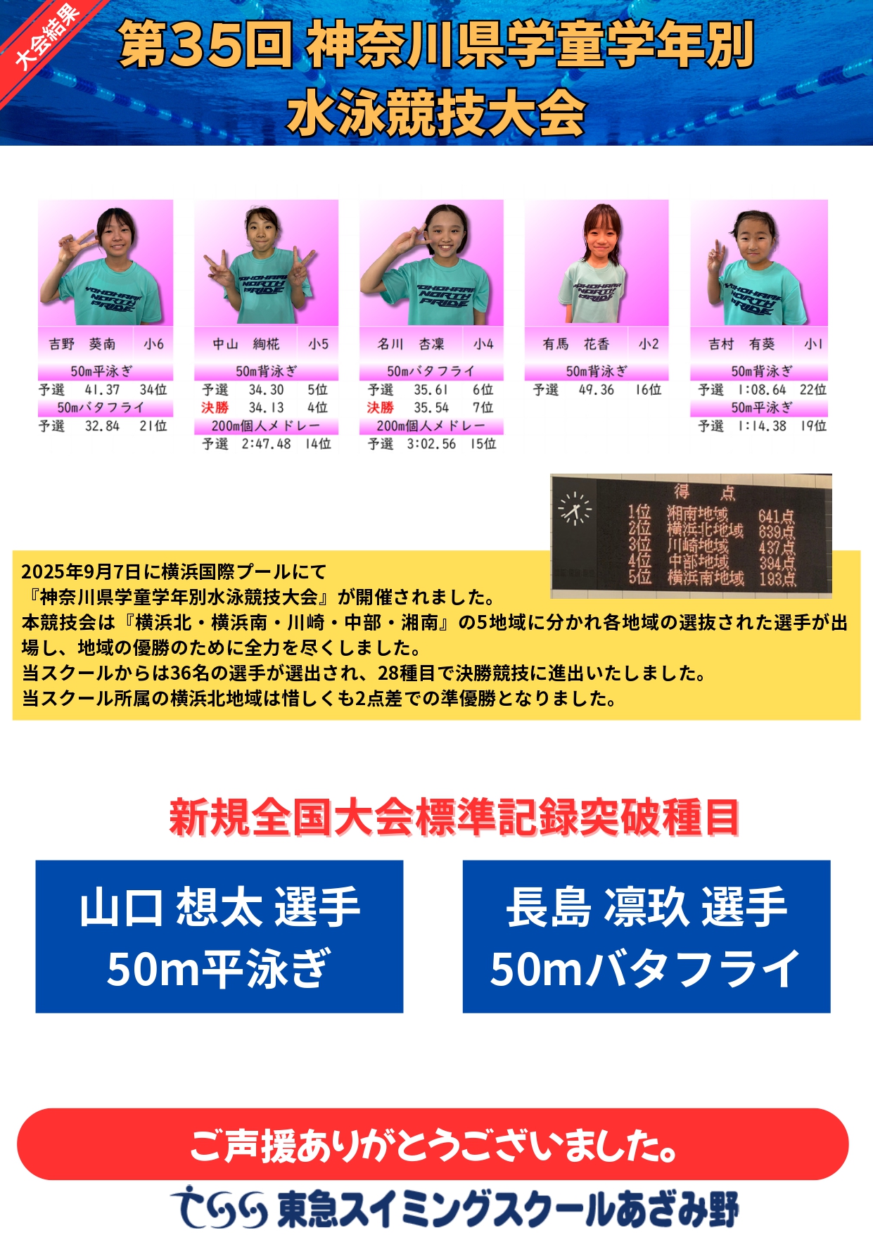 >選手・大会関連ニュース> 【神奈川県】学童学年別水泳競技大会 結果