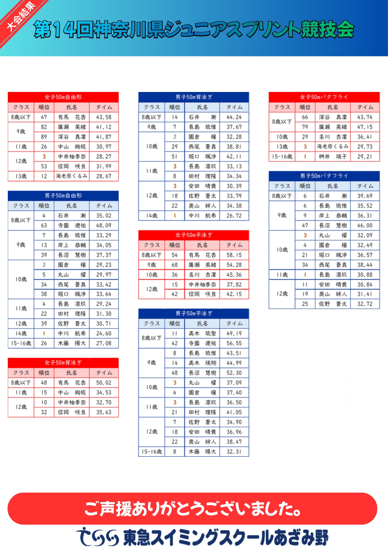 >選手・大会関連ニュース>【神奈川県】第14回神奈川県ジュニアスプリント競技会 結果