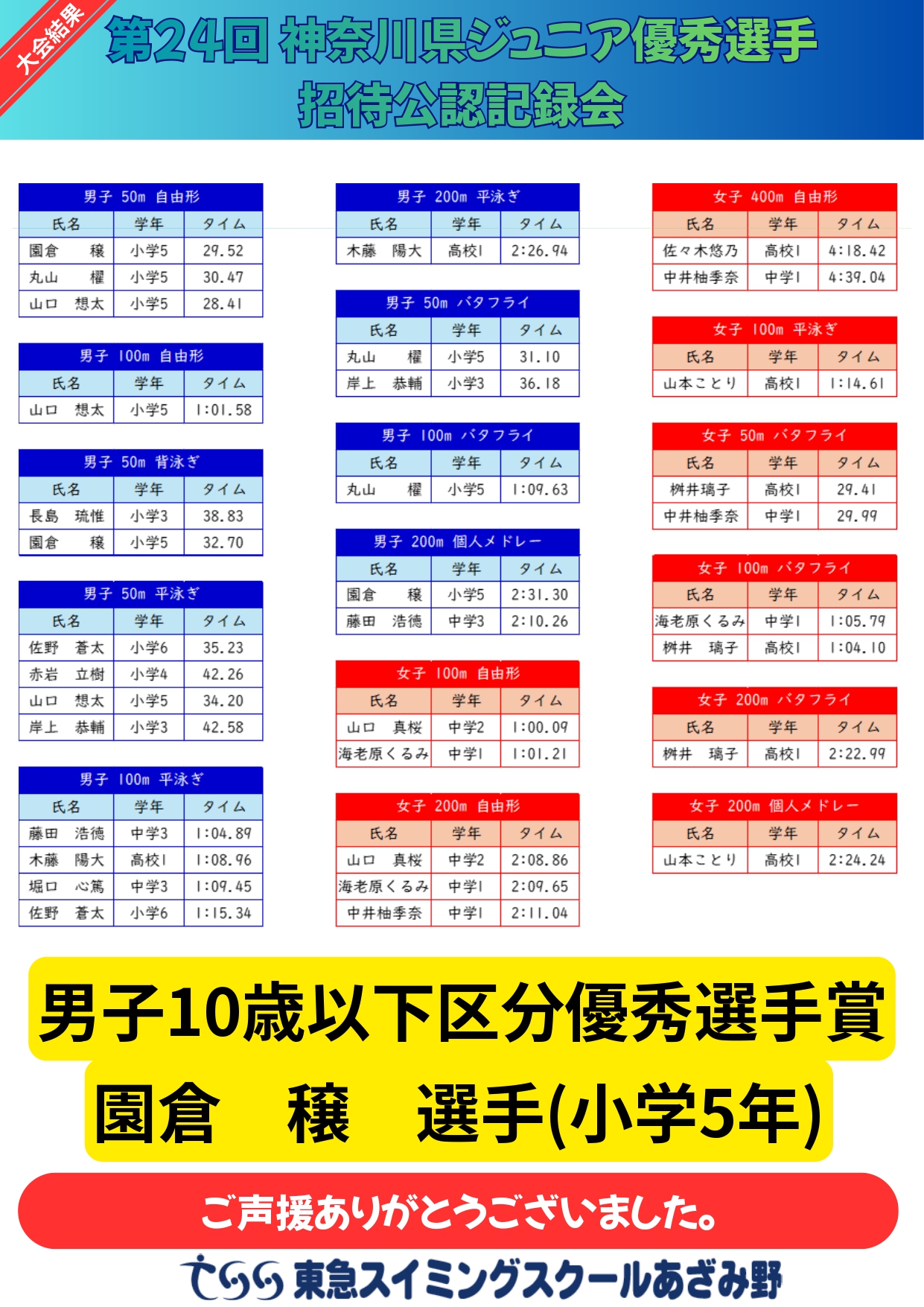 【神奈川県】第24回神奈川県ジュニア優秀選手招待公認記録会 結果