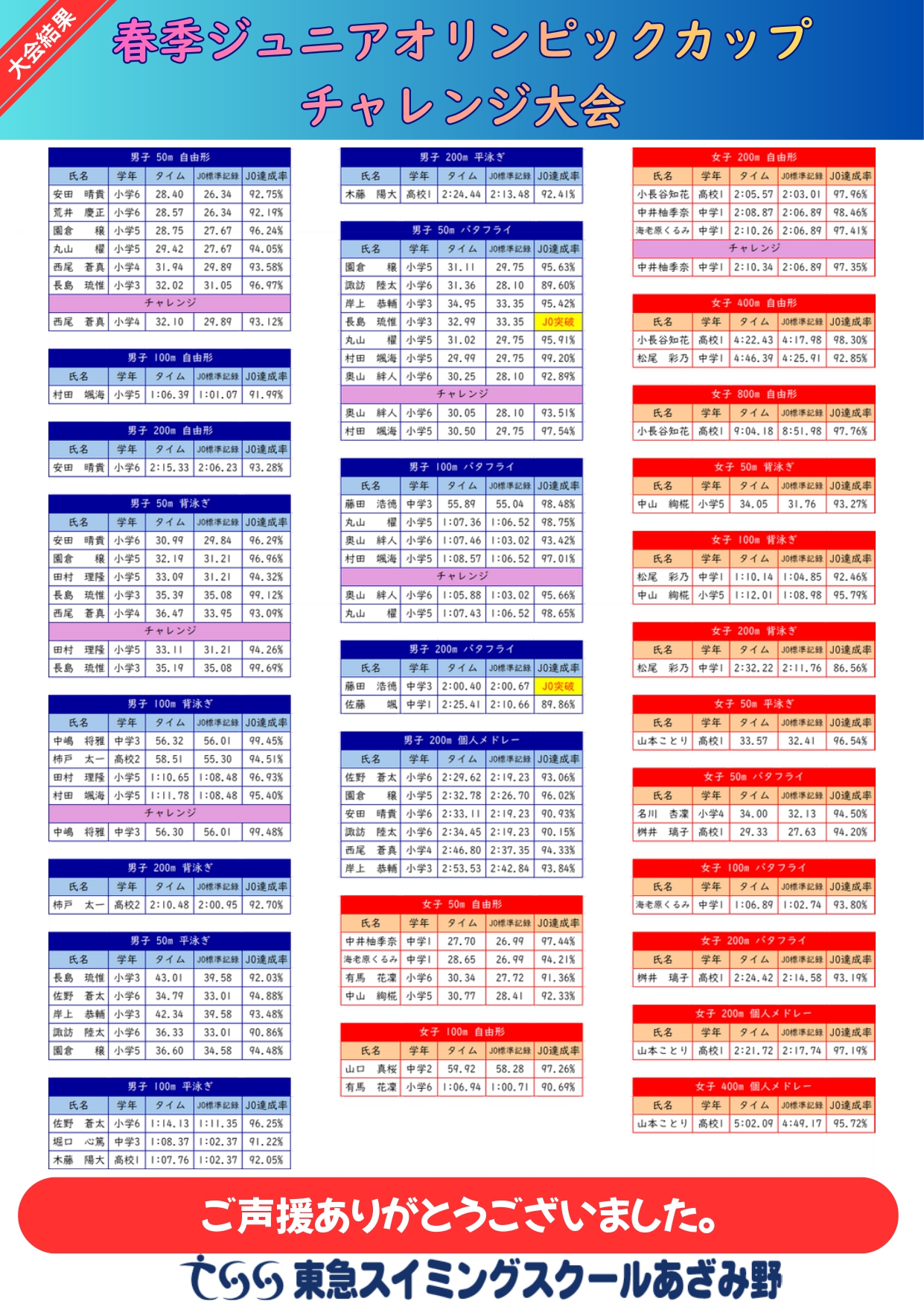 >選手・大会関連ニュース>【神奈川県】全国ジュニアオリンピックカップチャレンジ大会 結果