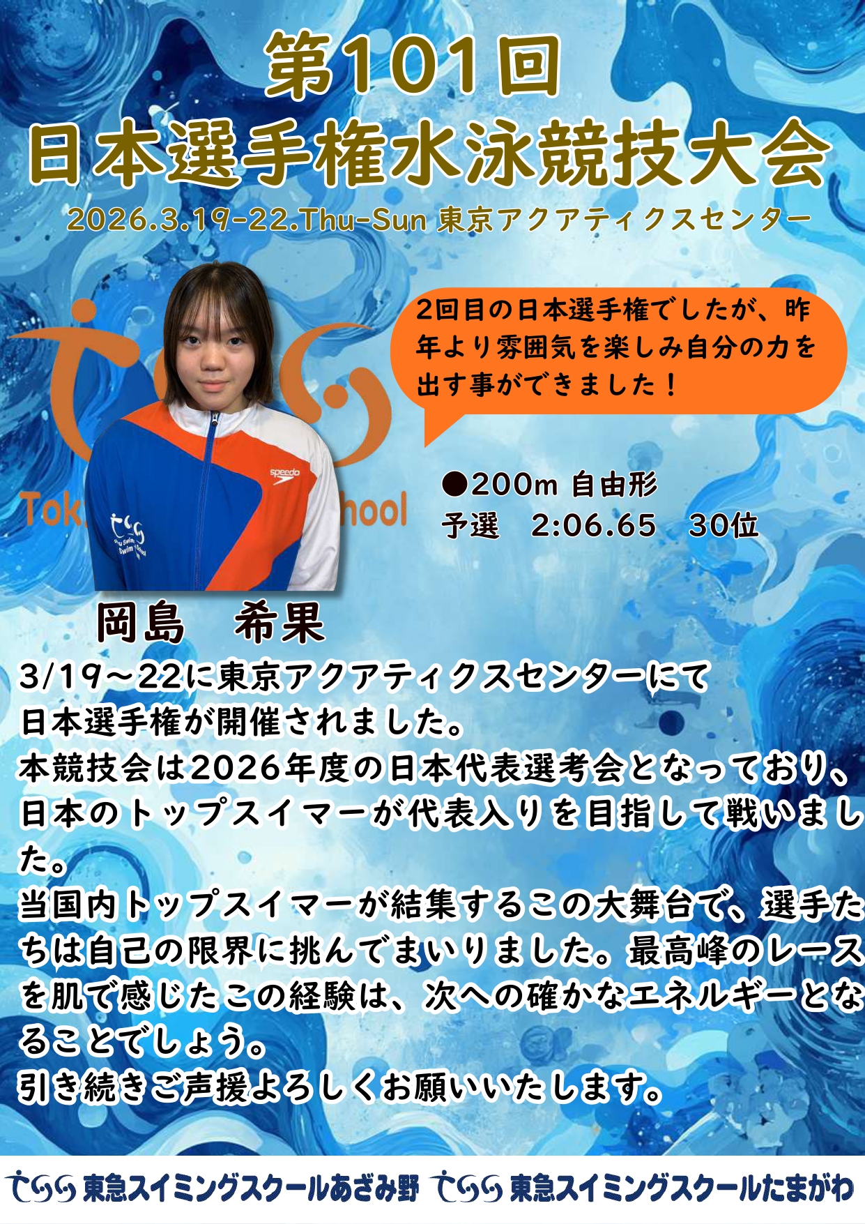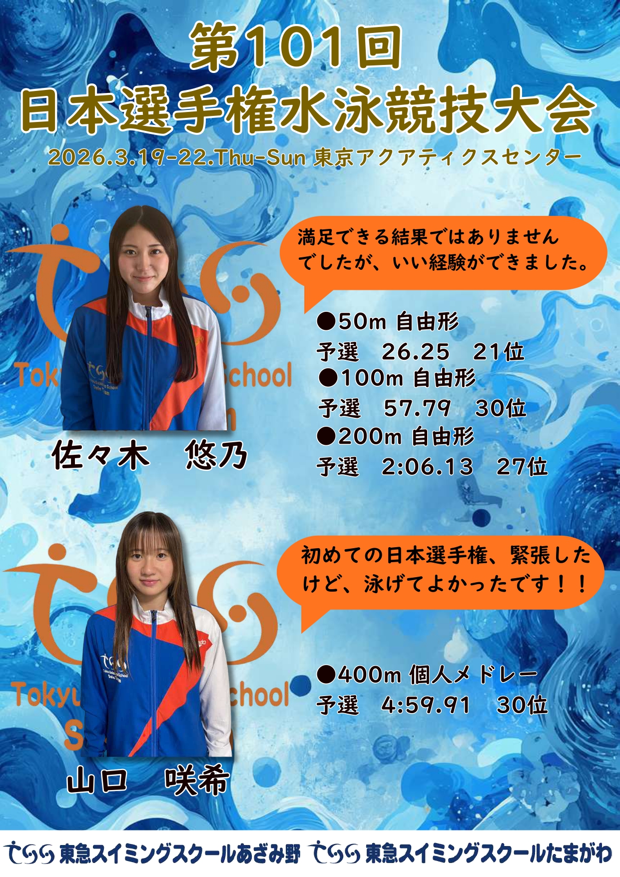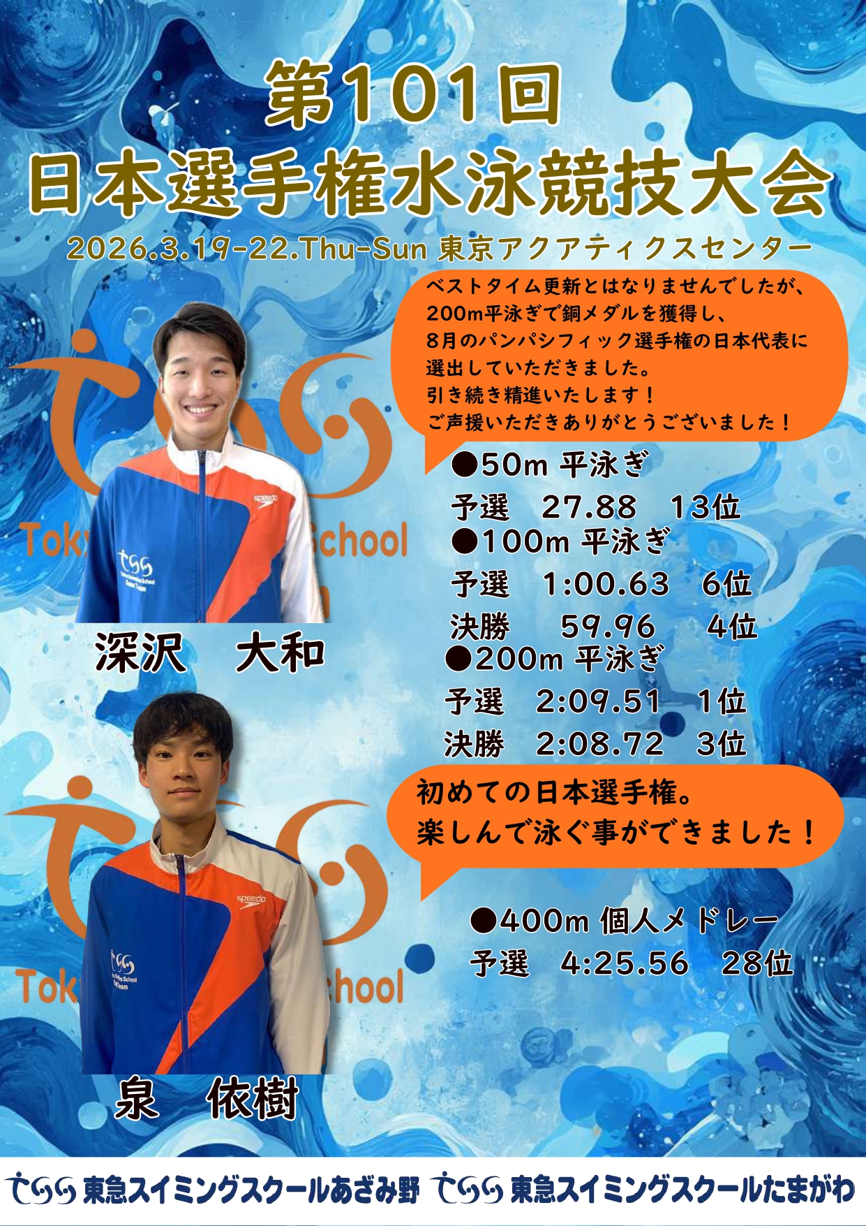 【日本最高峰】第101回日本選手権水泳競技大会 結果