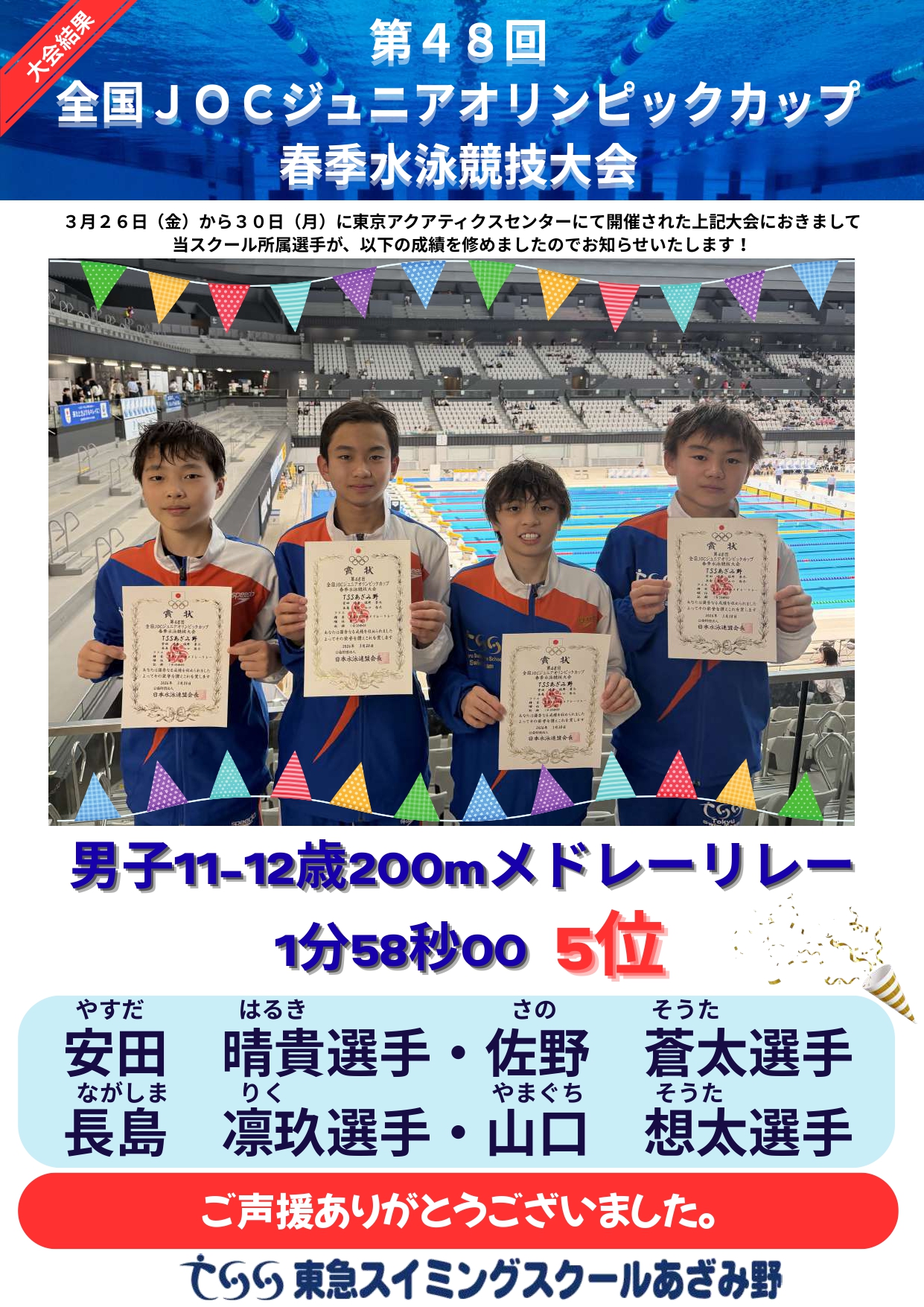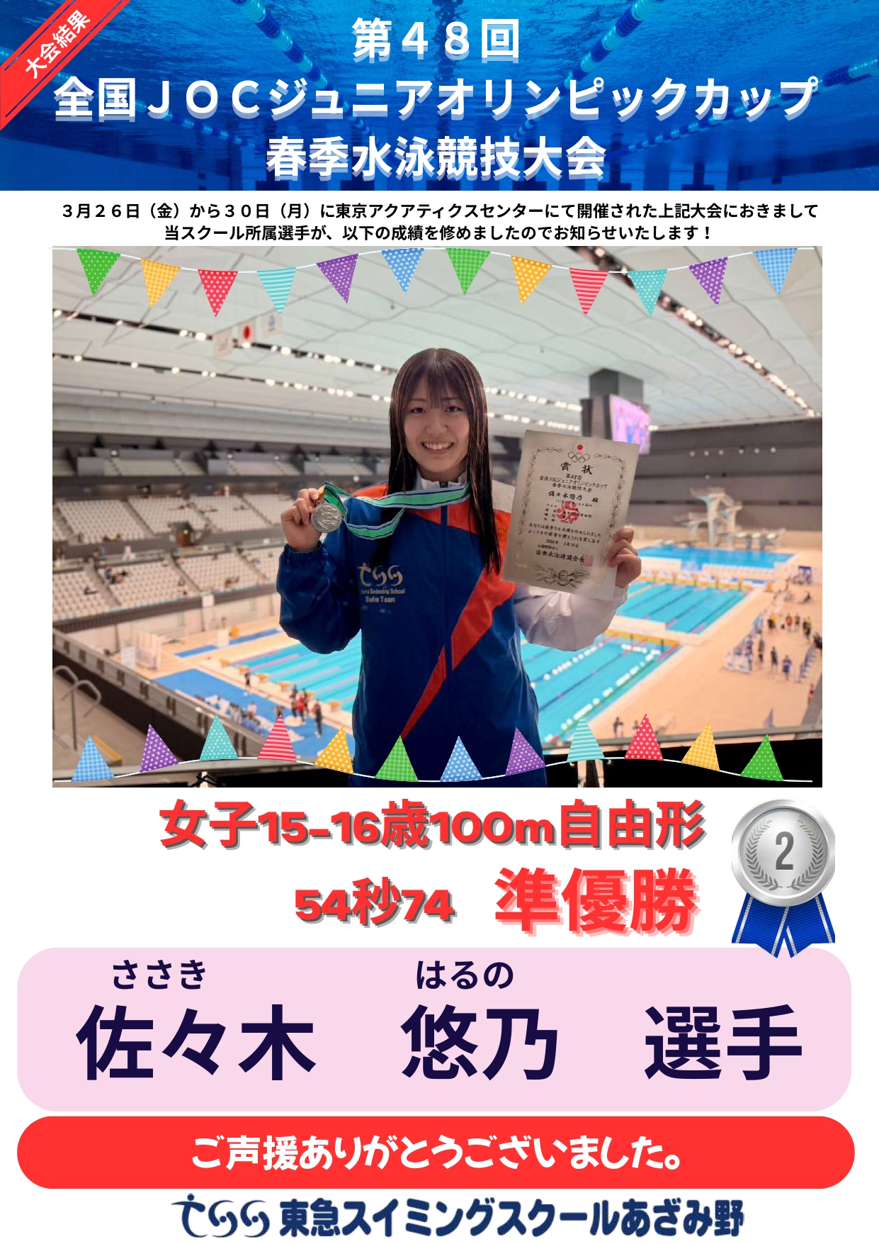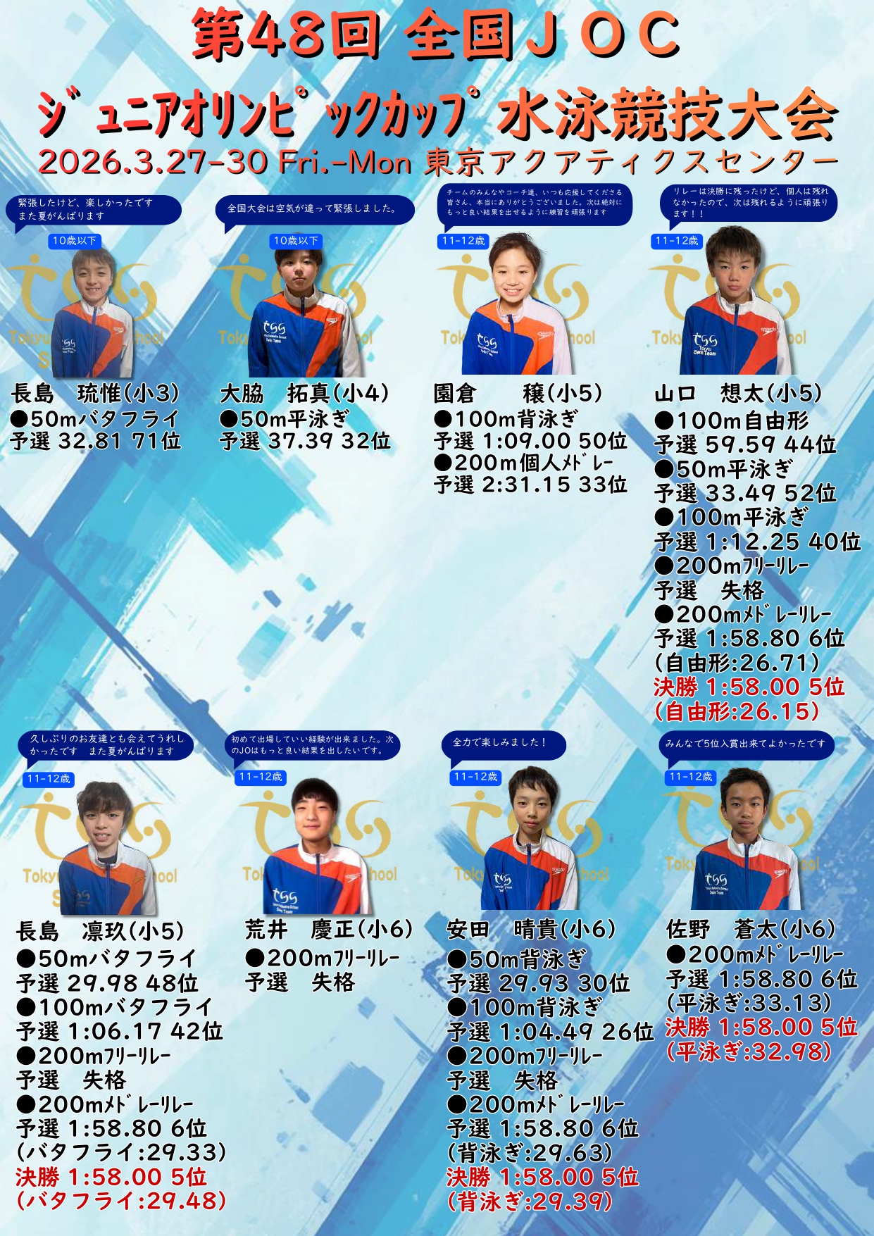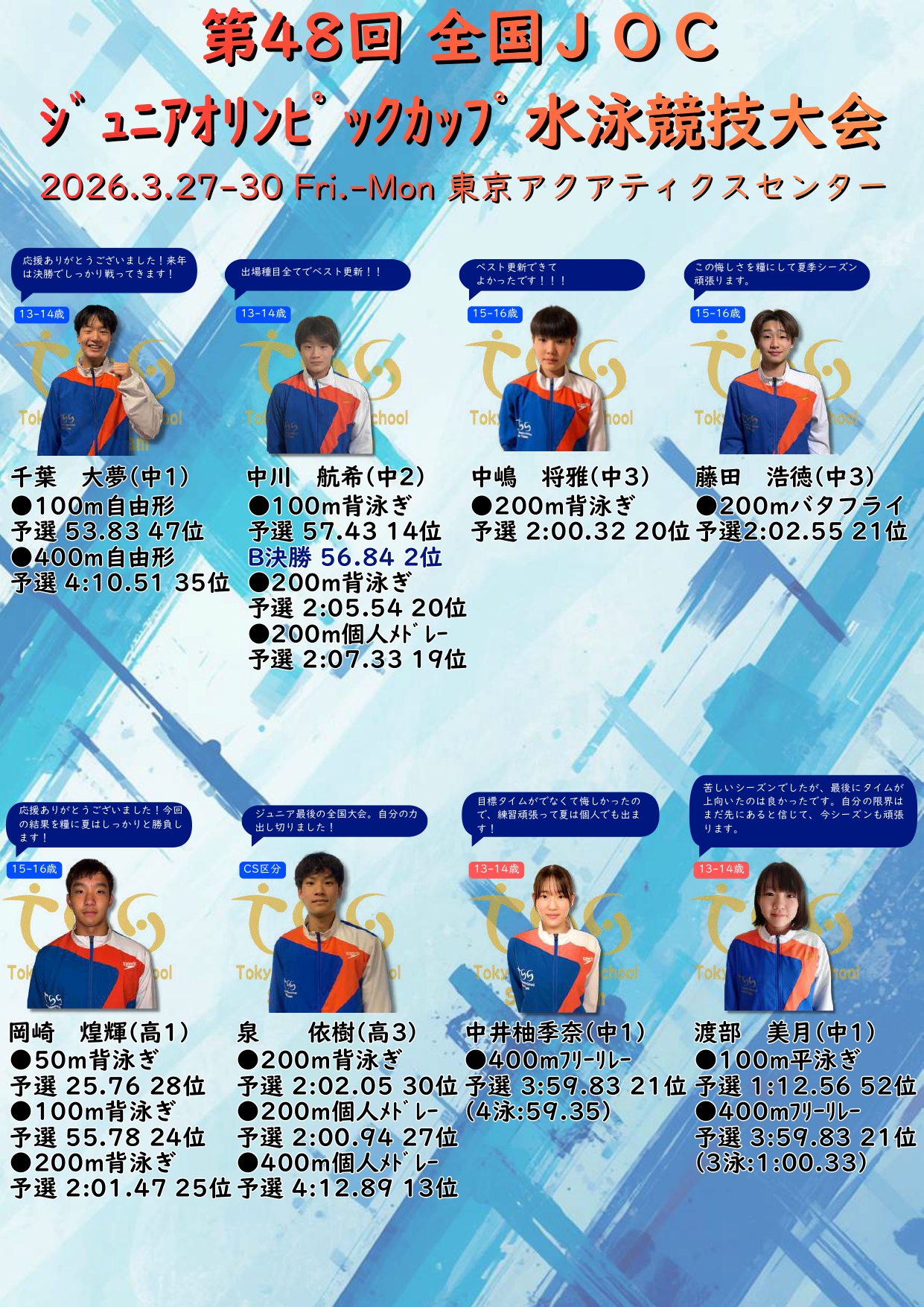 【全国】第48回 全国JOCジュニアオリンピックカップ春季水泳競技大会 結果