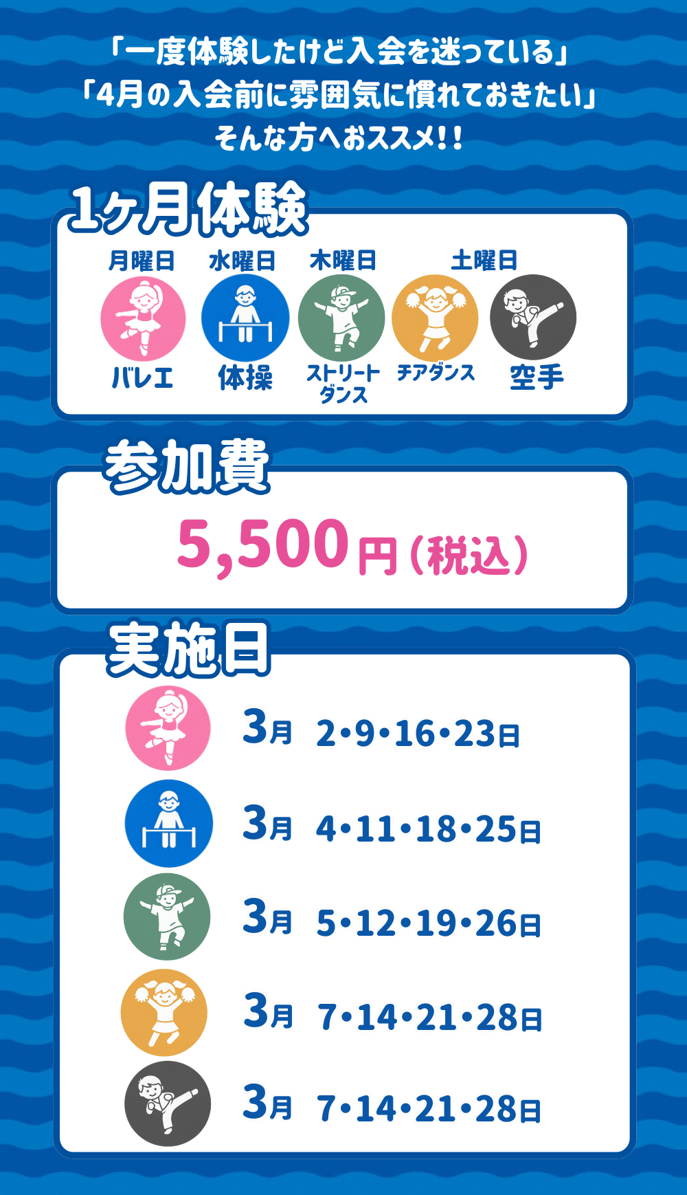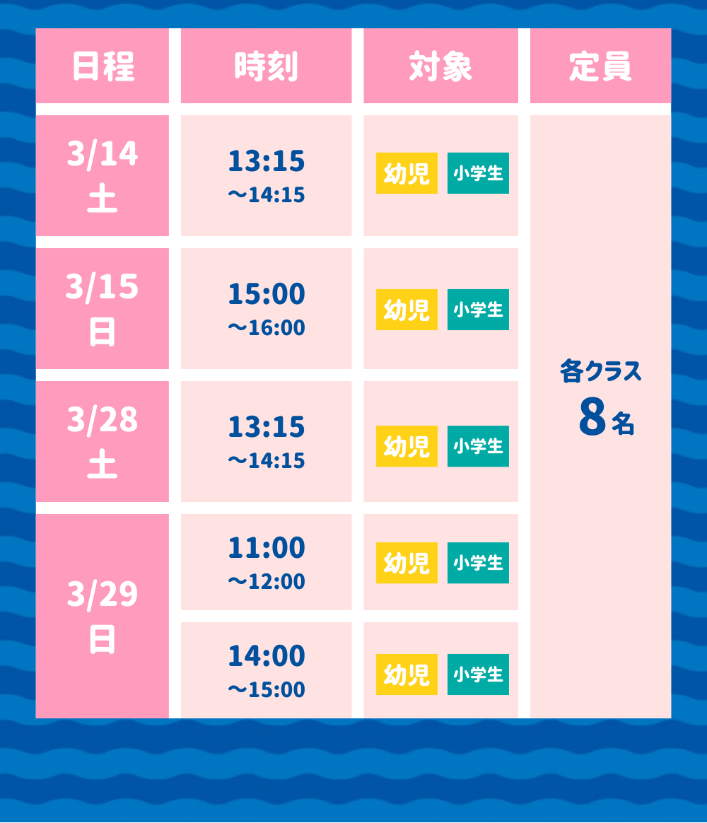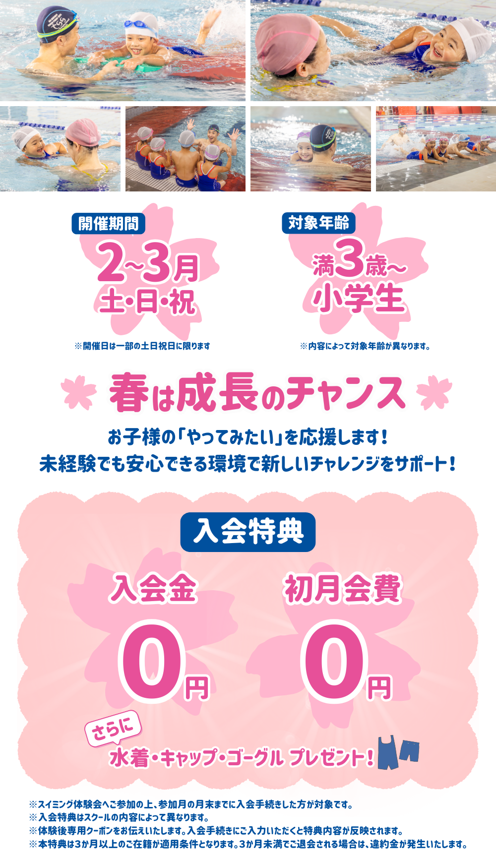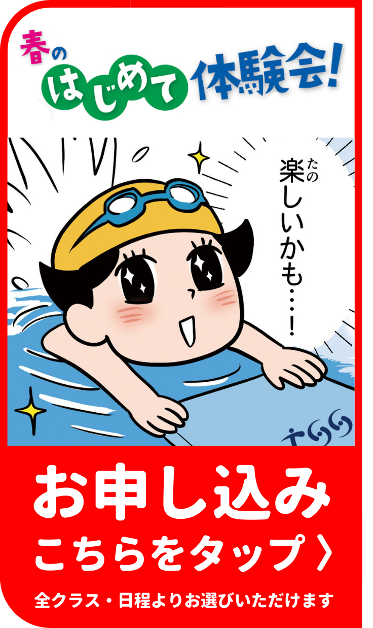 他のスイミングスクールのご経験があっても問題ございません。体験予約時のアンケートにてお知らせください。