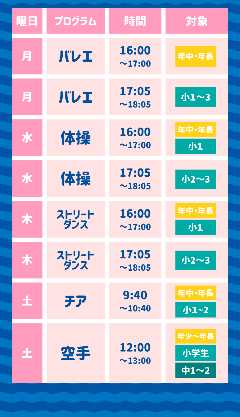 スイミングはもちろん習い事が初めての方でも問題ございません。気になる点はお気軽にお問い合わせください。