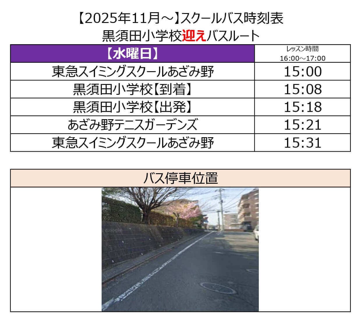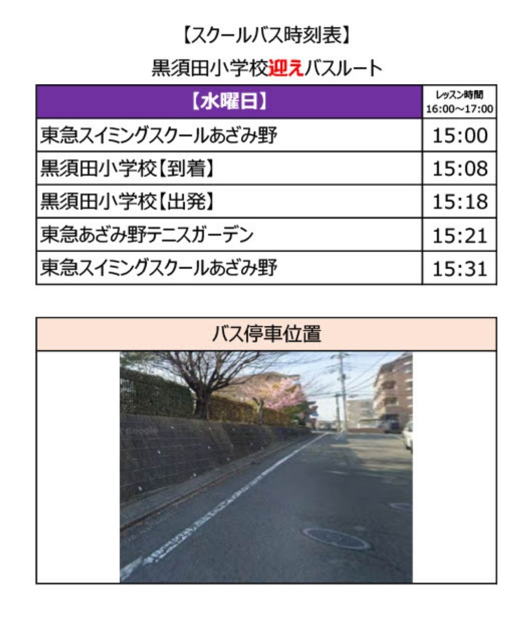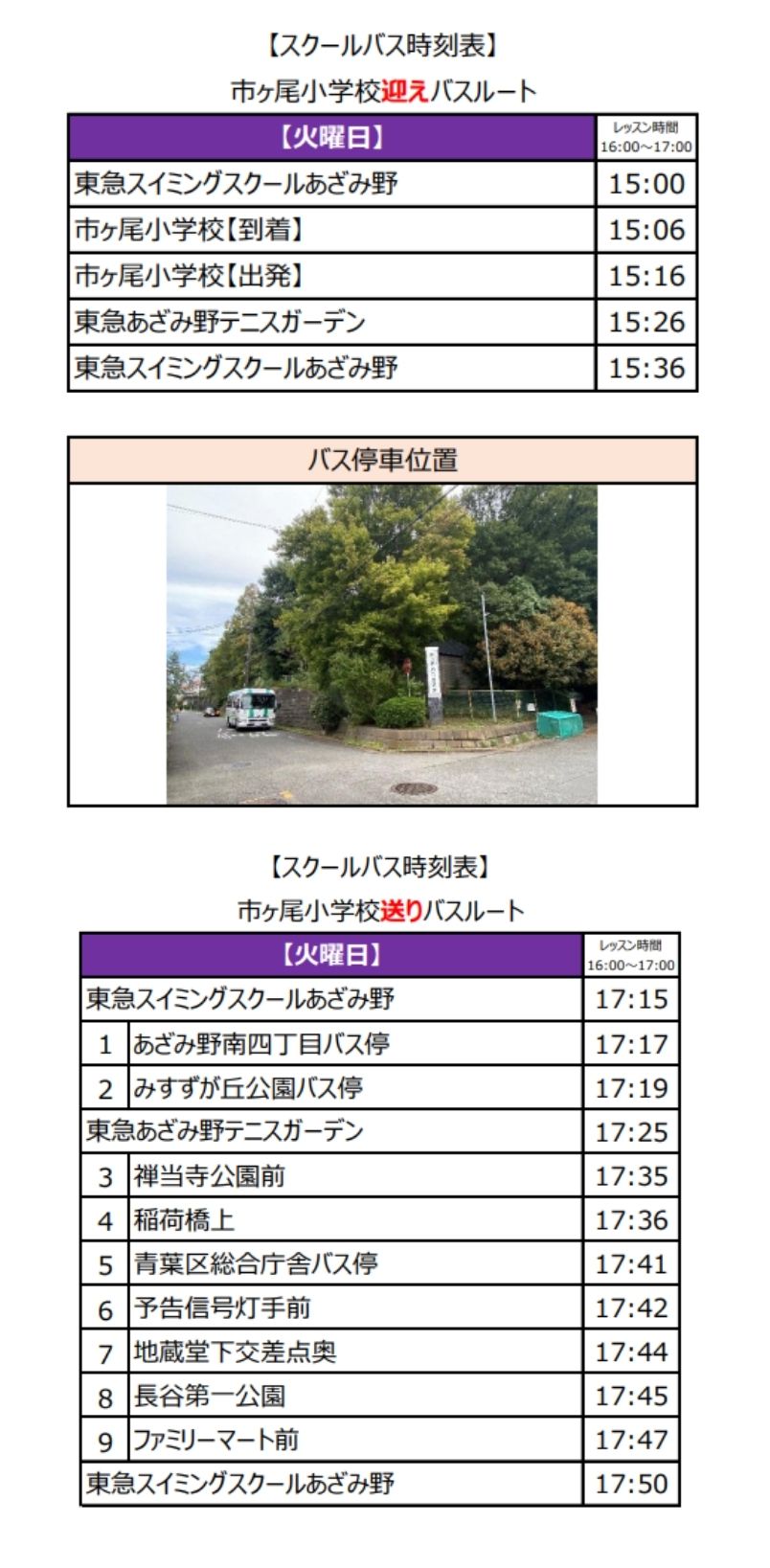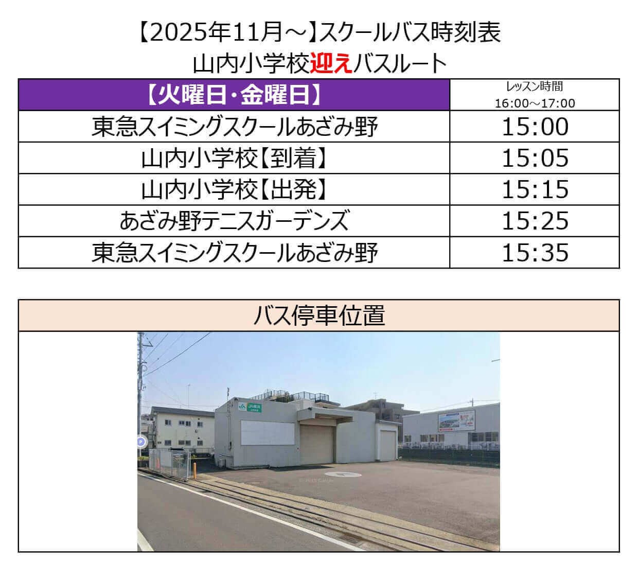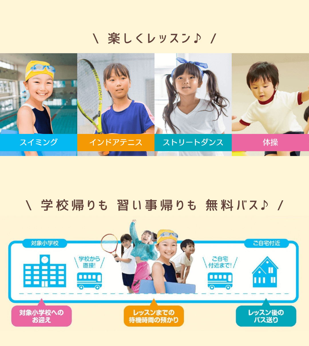 ※習い事テニスの帰宅バスはございません。