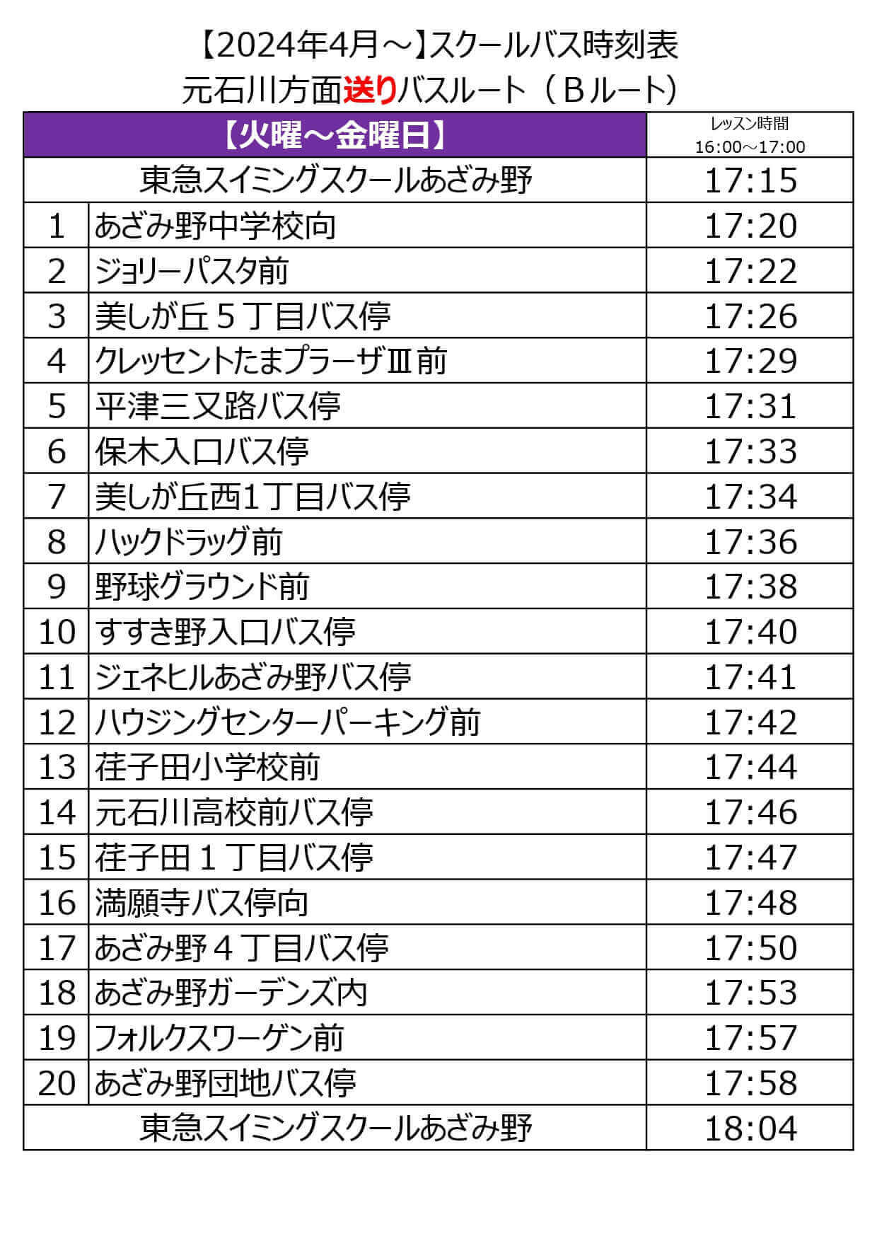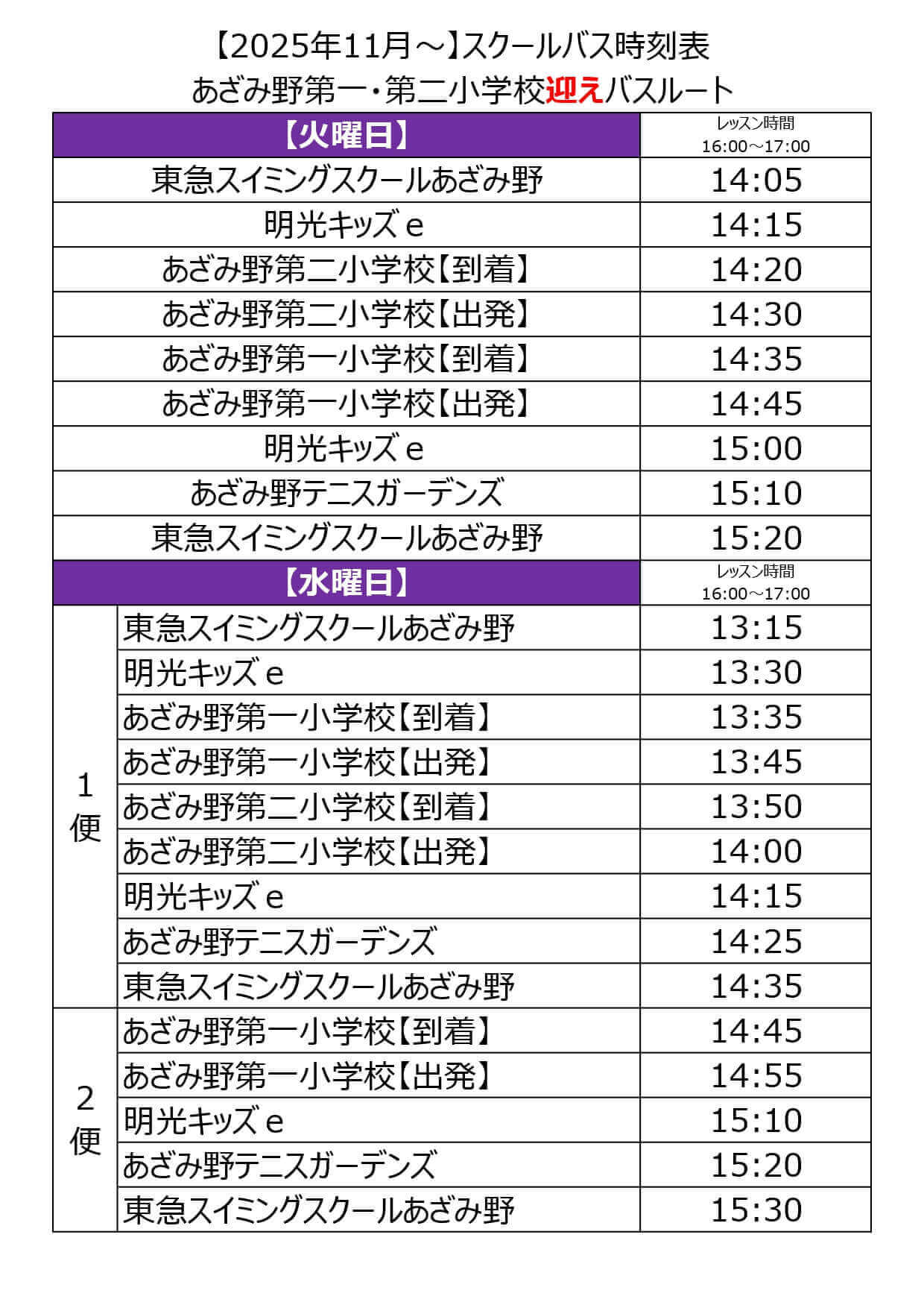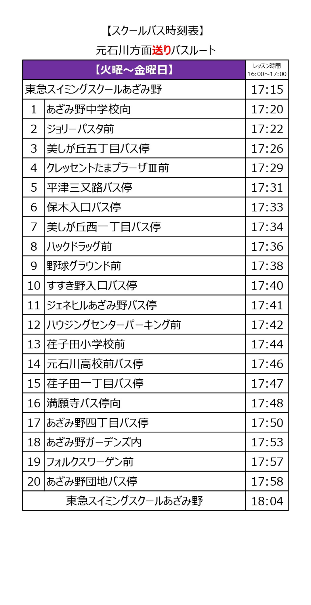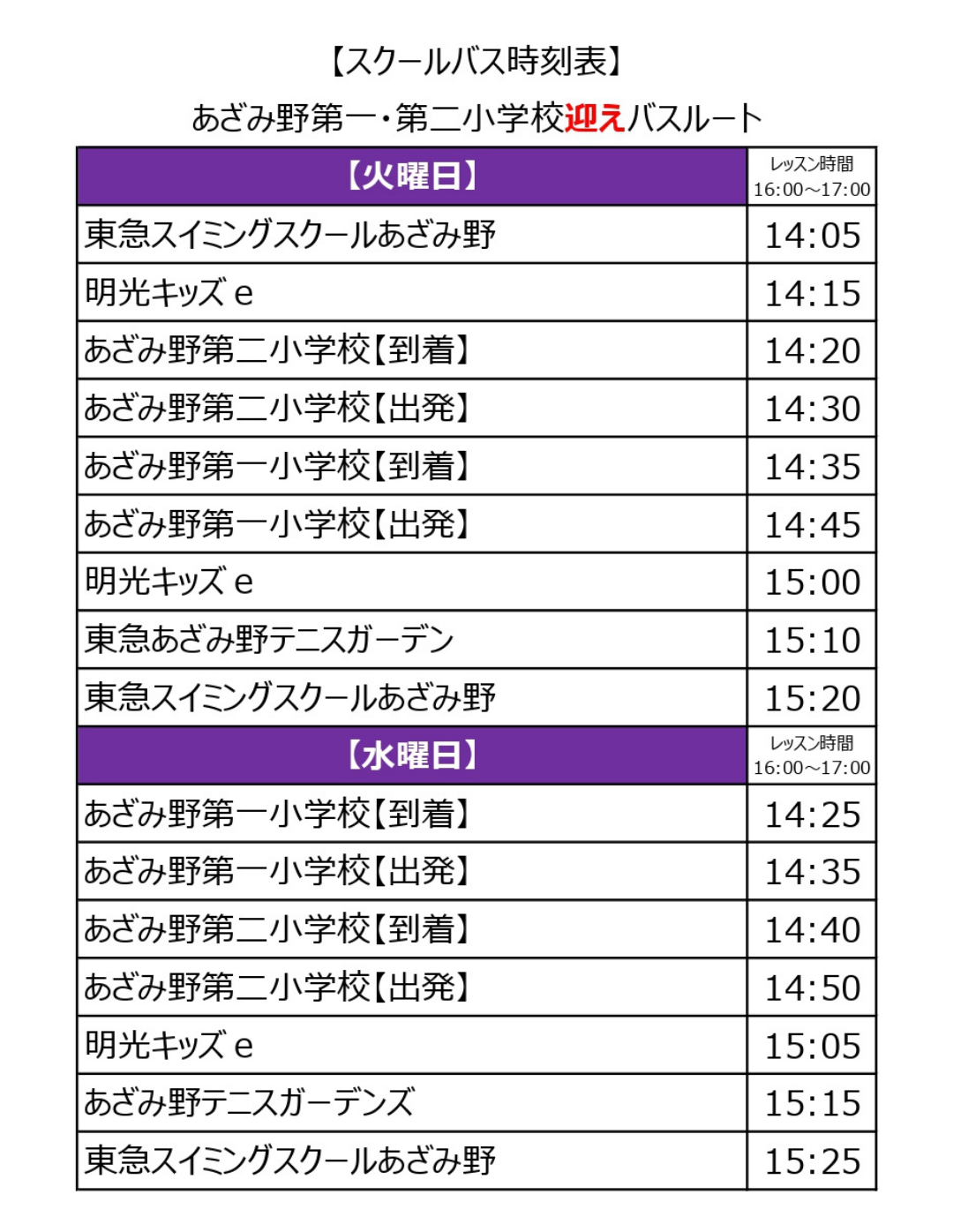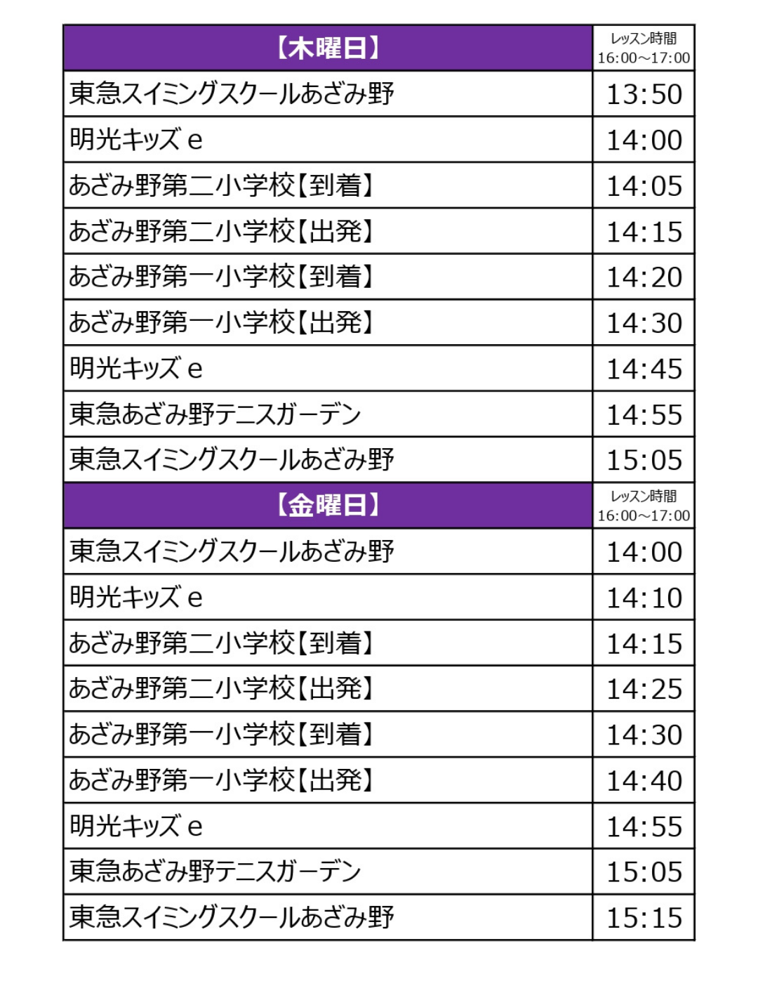 ※習い事テニスの帰宅バスはございません。