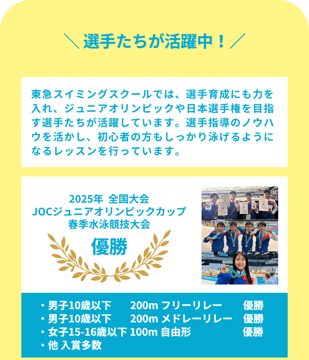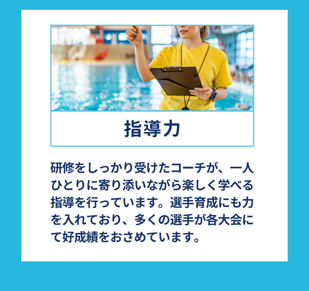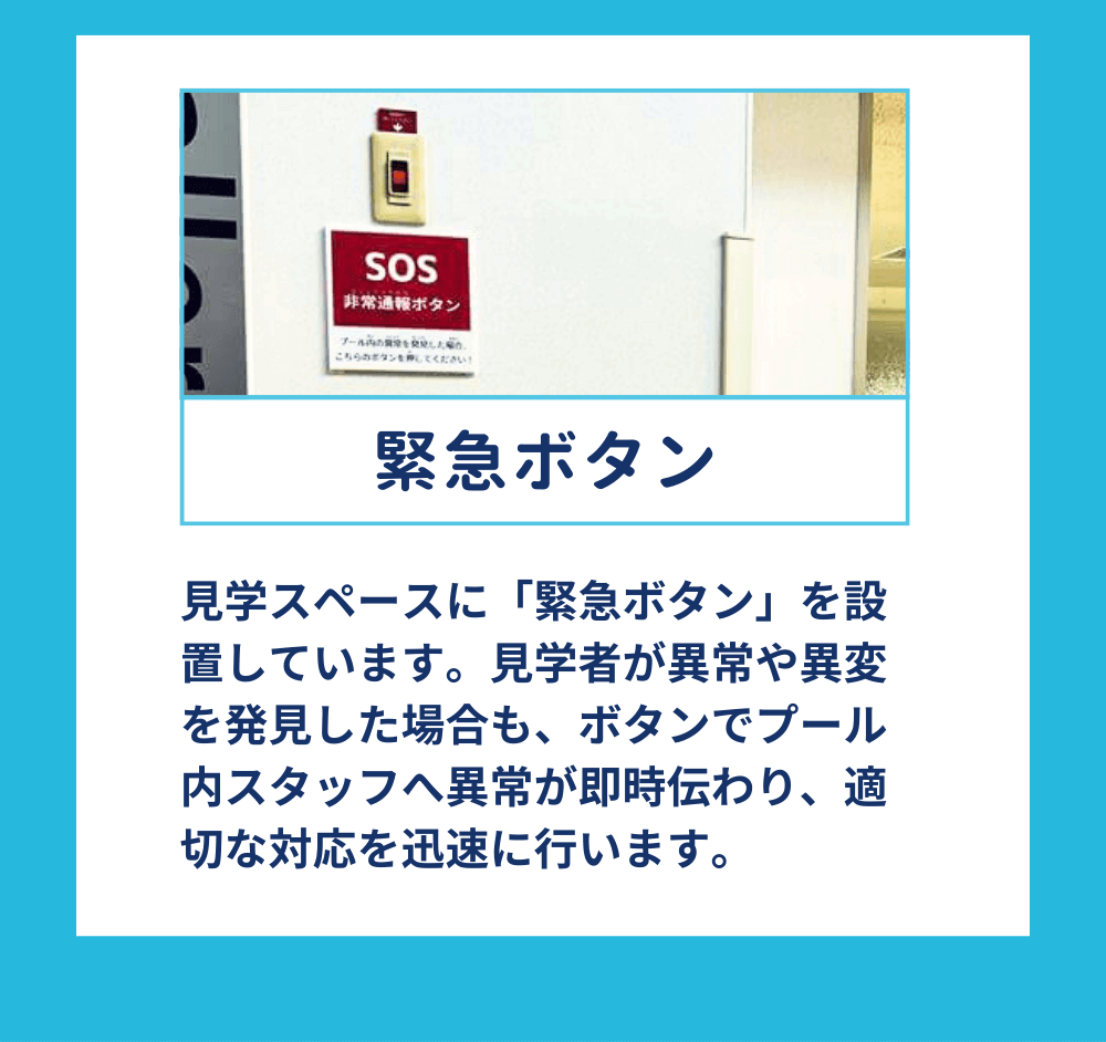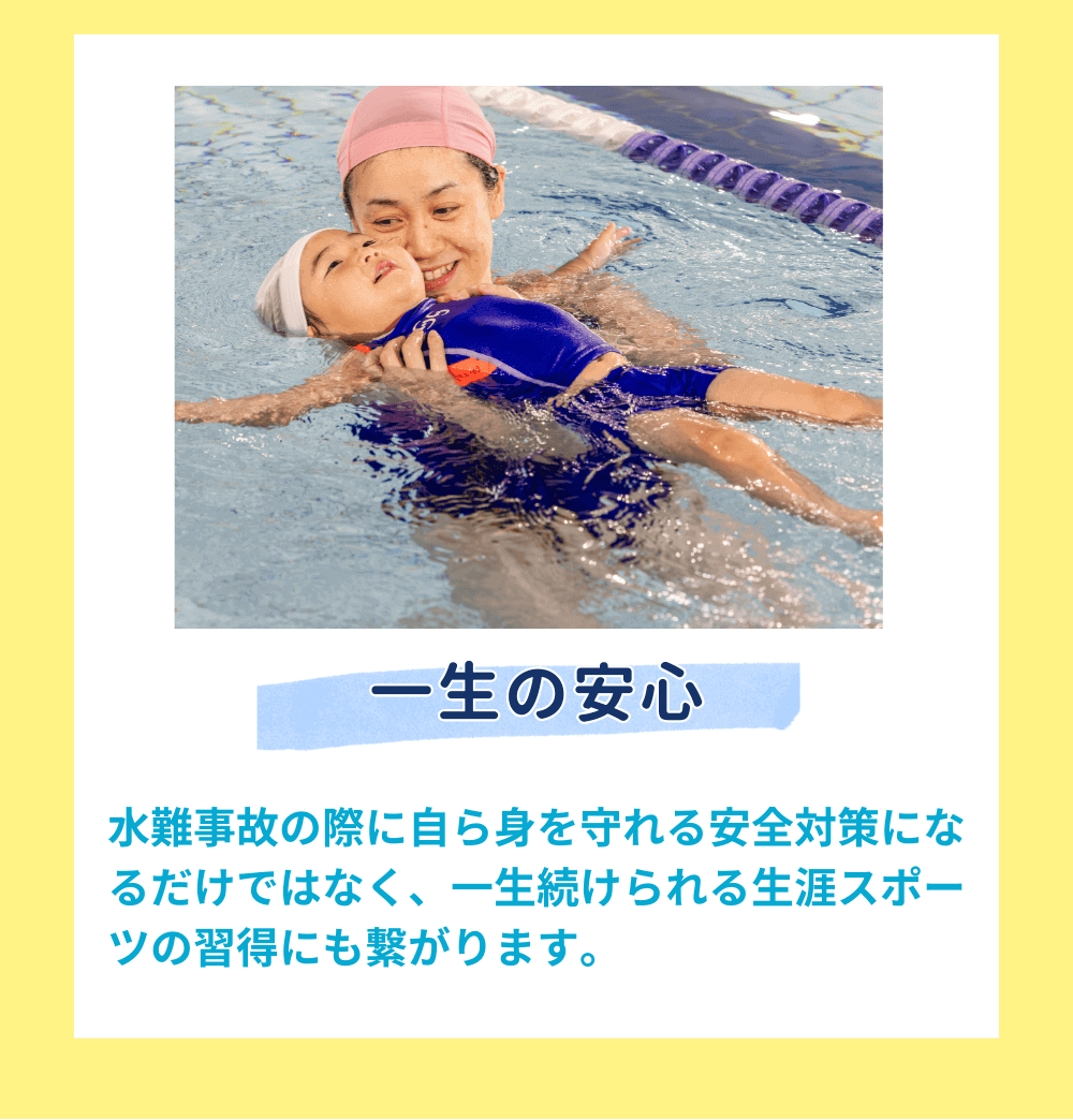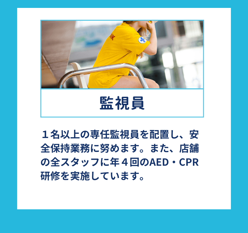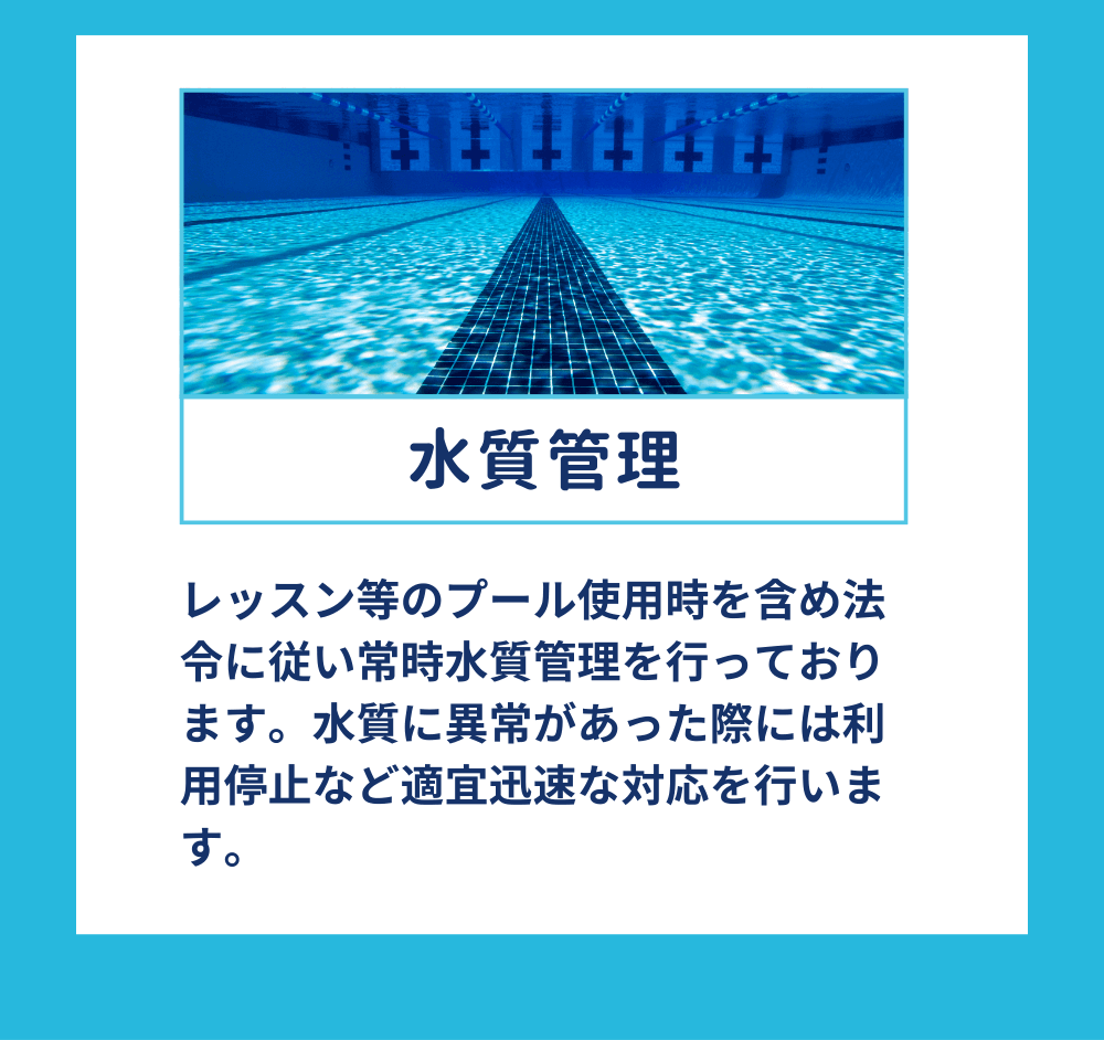 お子さまの笑顔と安心を守るために、水質管理からコーチの質まで徹底。異常を未然に防ぎ、万が一の緊急時もすぐ対応できる体制で、安心できる安全なスクールです。
