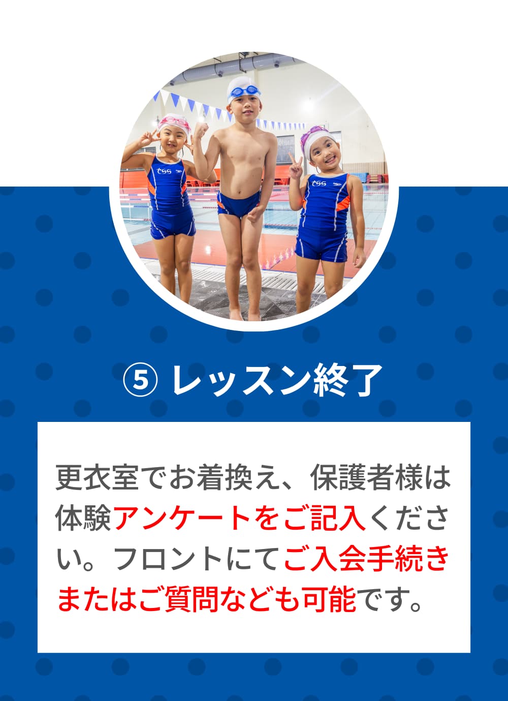他のスイミングスクールのご経験があっても問題ございません。体験予約時のアンケートにてお知らせください。
