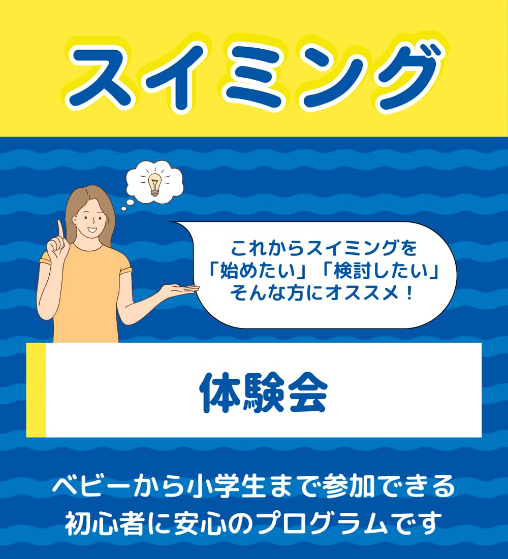 他のスイミングスクールのご経験があっても問題ございません。体験予約時のアンケートにてお知らせください。