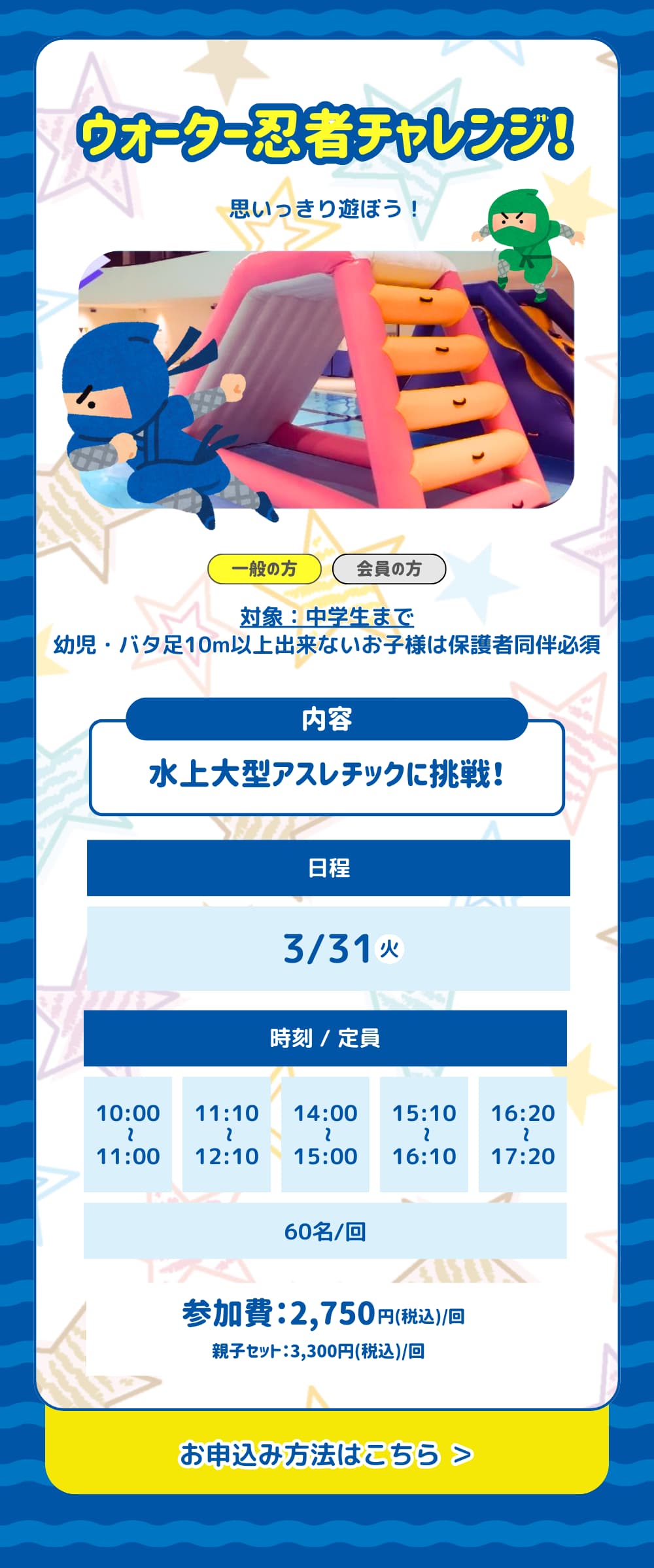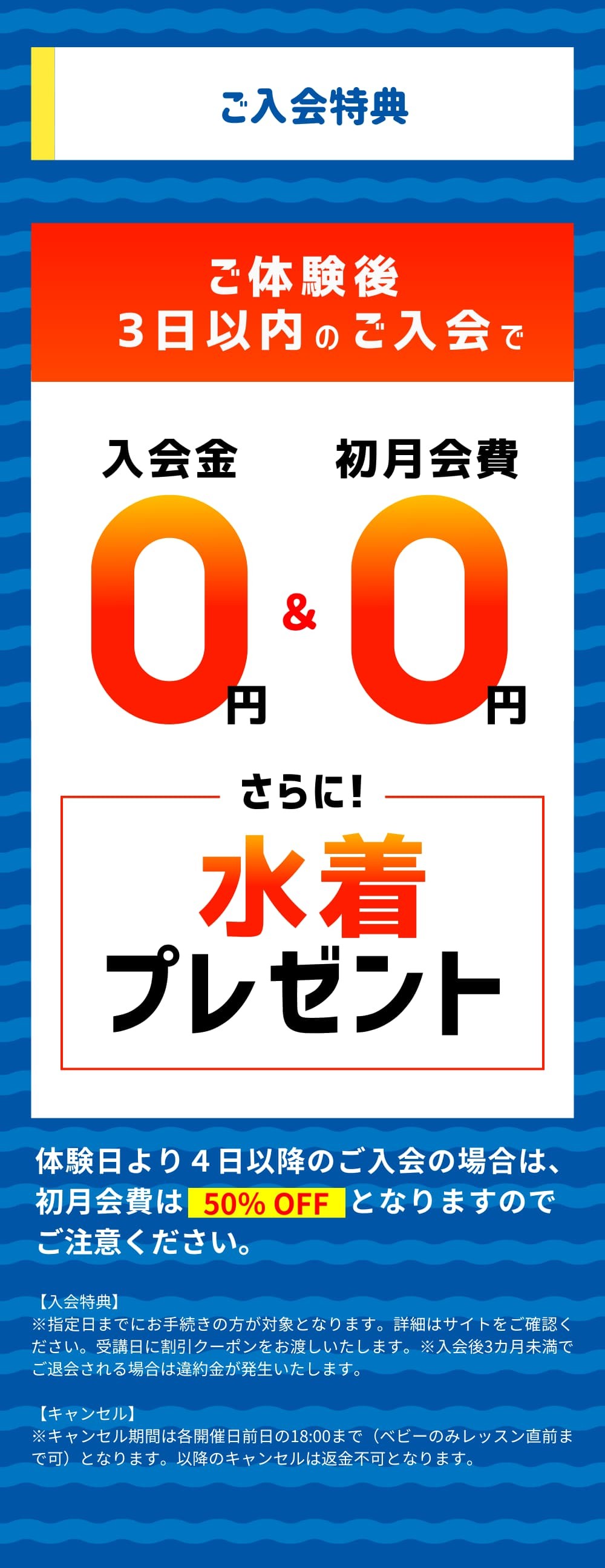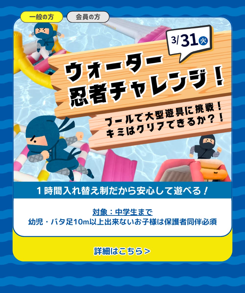 水着・キャップ・タオル・水筒(ペットボトル可)をご用意ください。