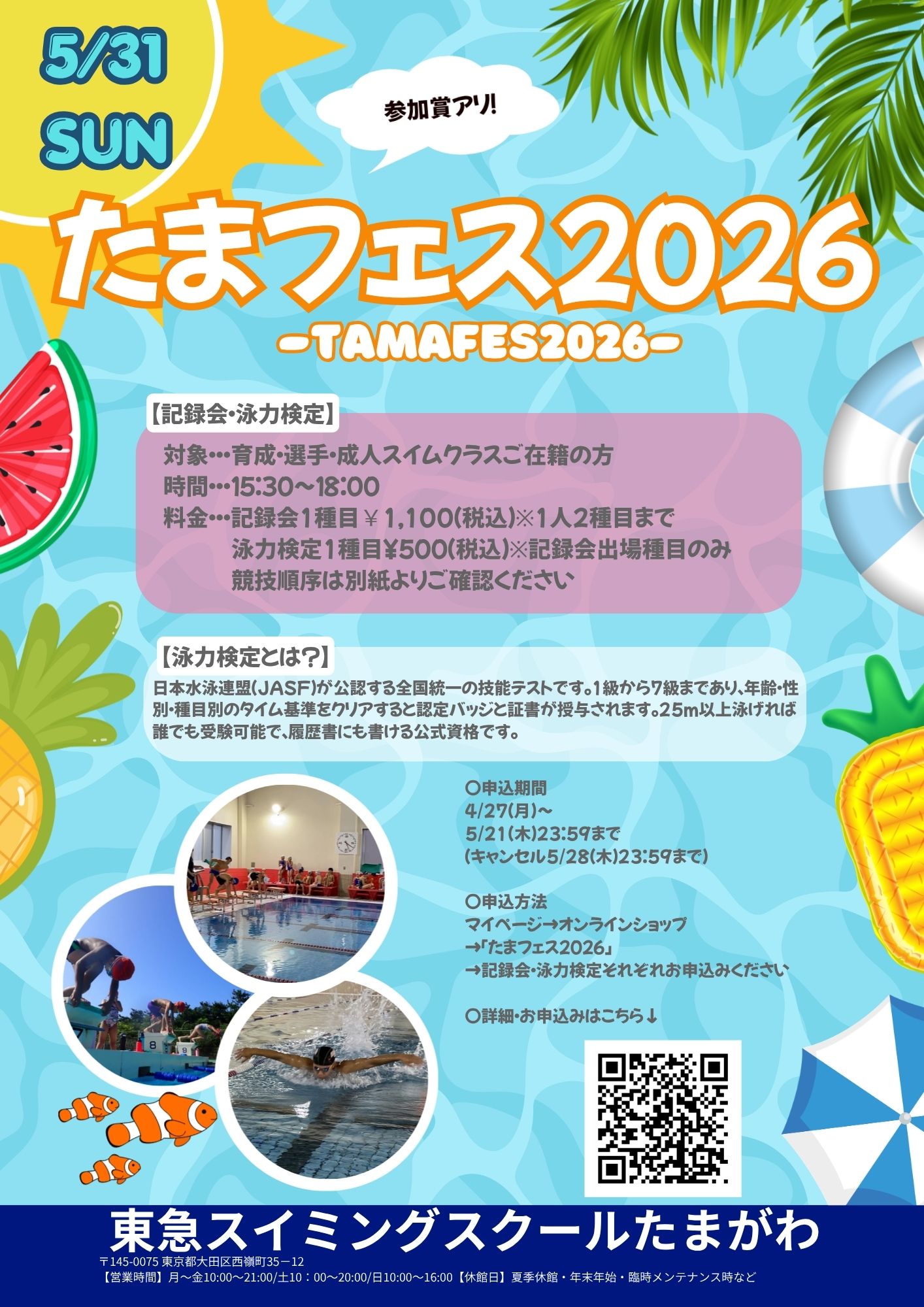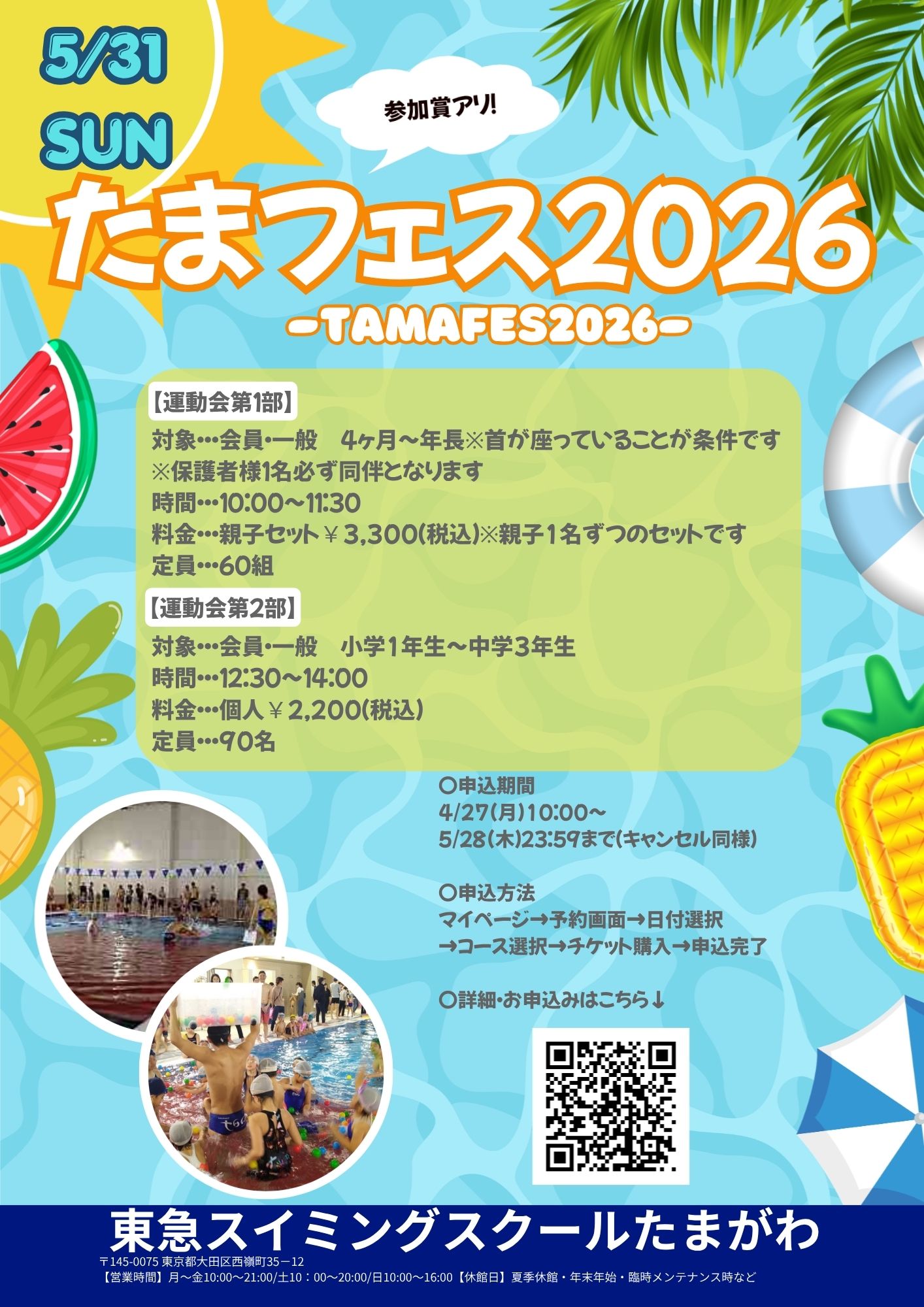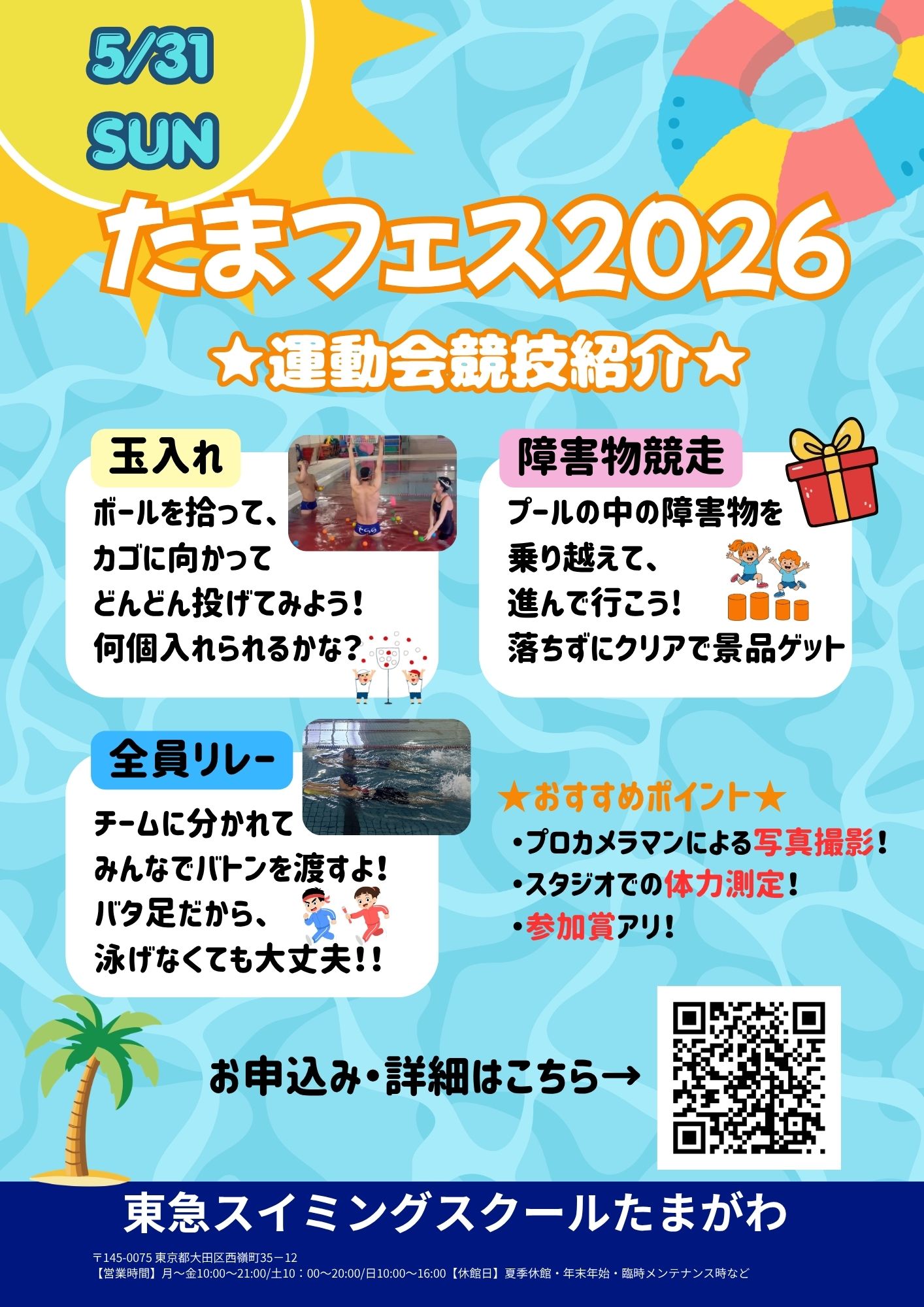 ●持ち物 水着、スイミングキャップ、タオル、飲み物