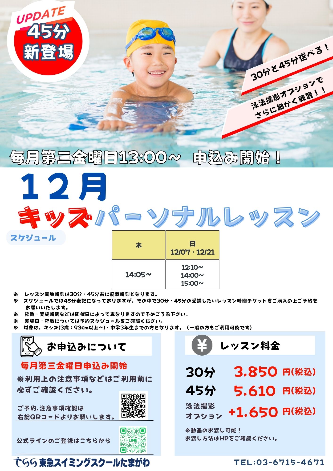 12月キッズパーソナルレッスンのご案内です!