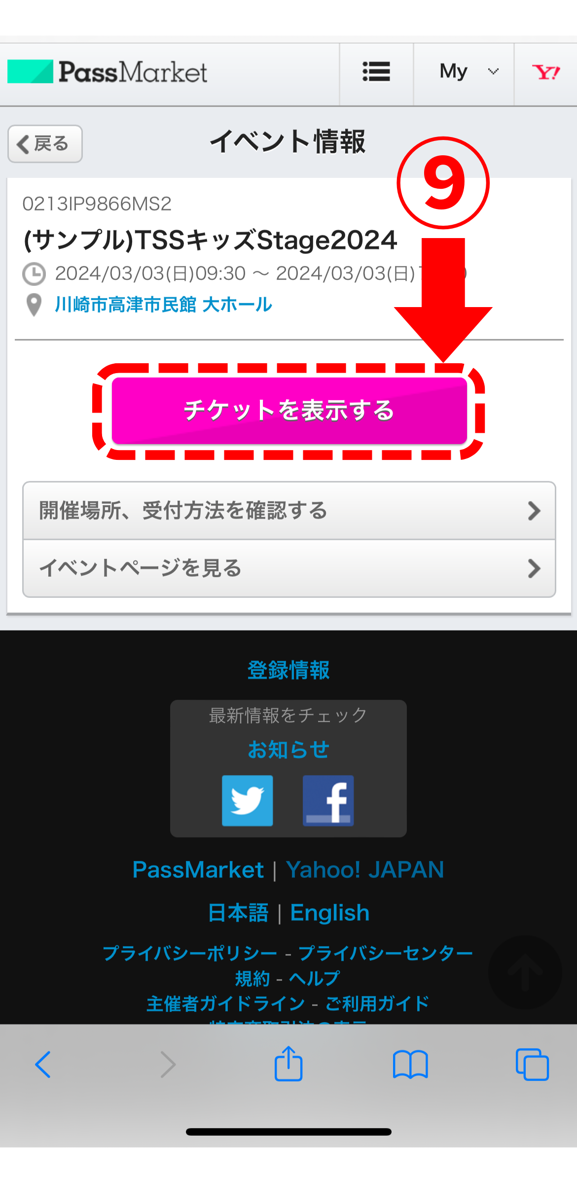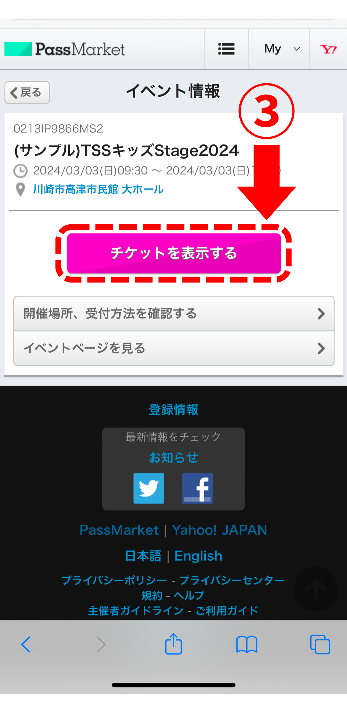 イベント情報をご確認し、お間違いがなければ【チケットを表示する】をタップする。