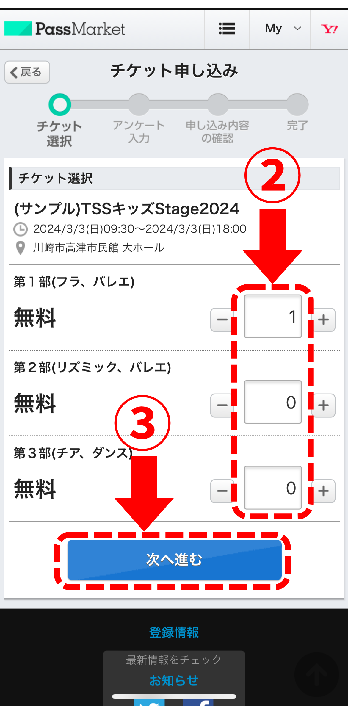お子様が出演する部を「1枚」選択し、次ぎへ進む。