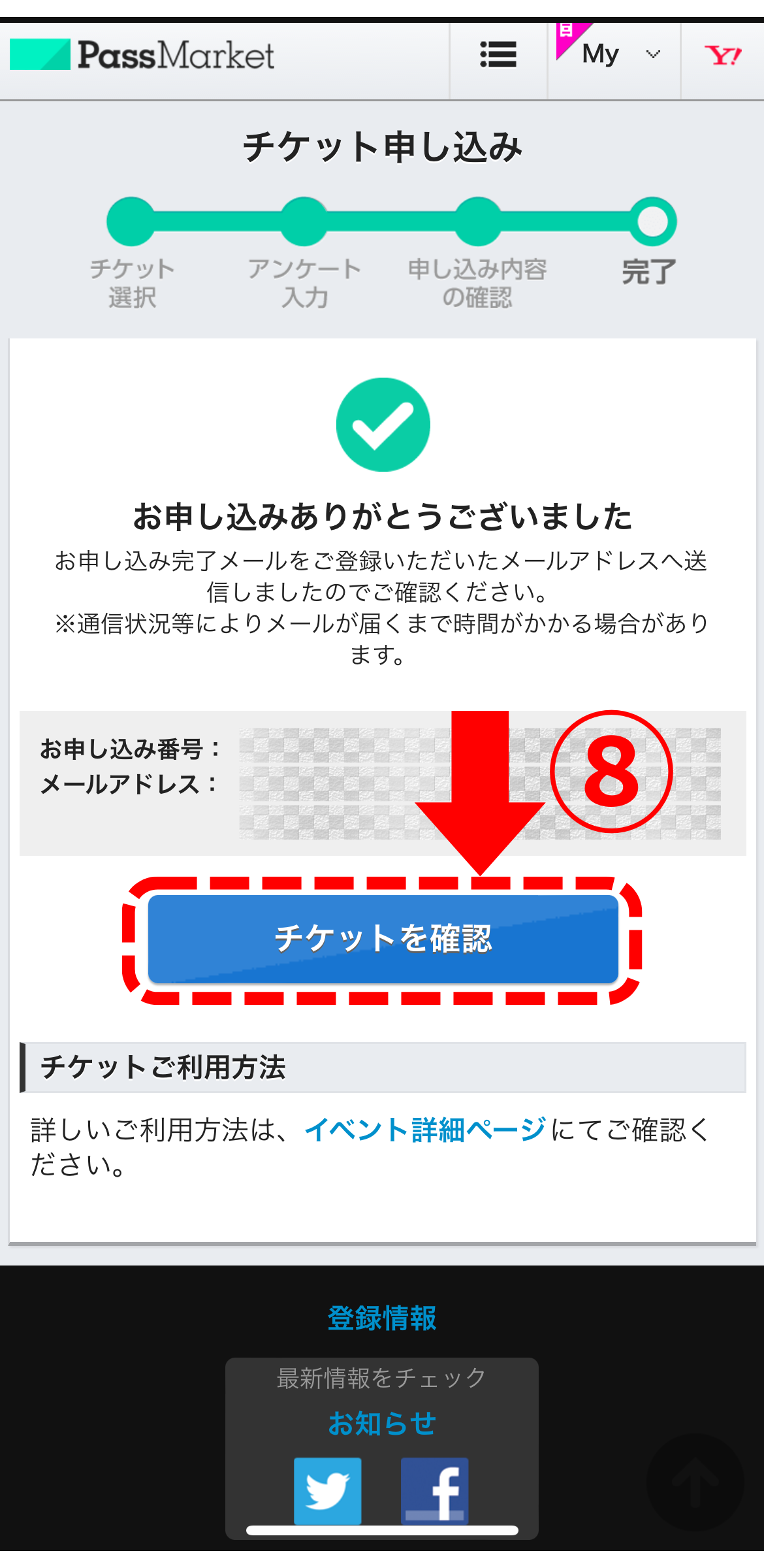 お申し込みが完了したことを確認し、【チケットを確認】をタップする。
