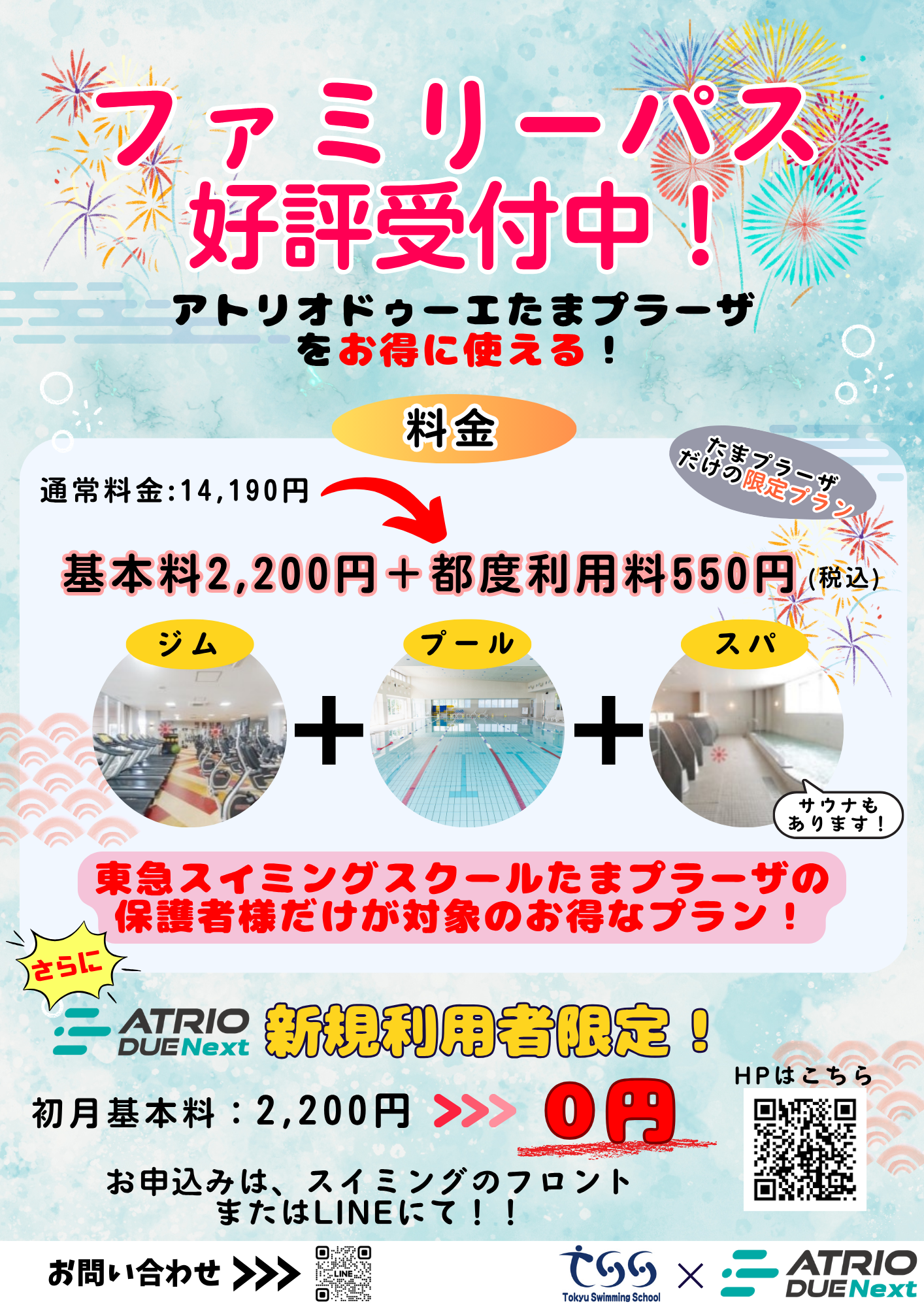 2025年3月より、東急スイミングスクールたまプラーザに在籍のお子様の保護者様向けに、