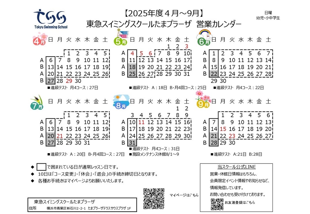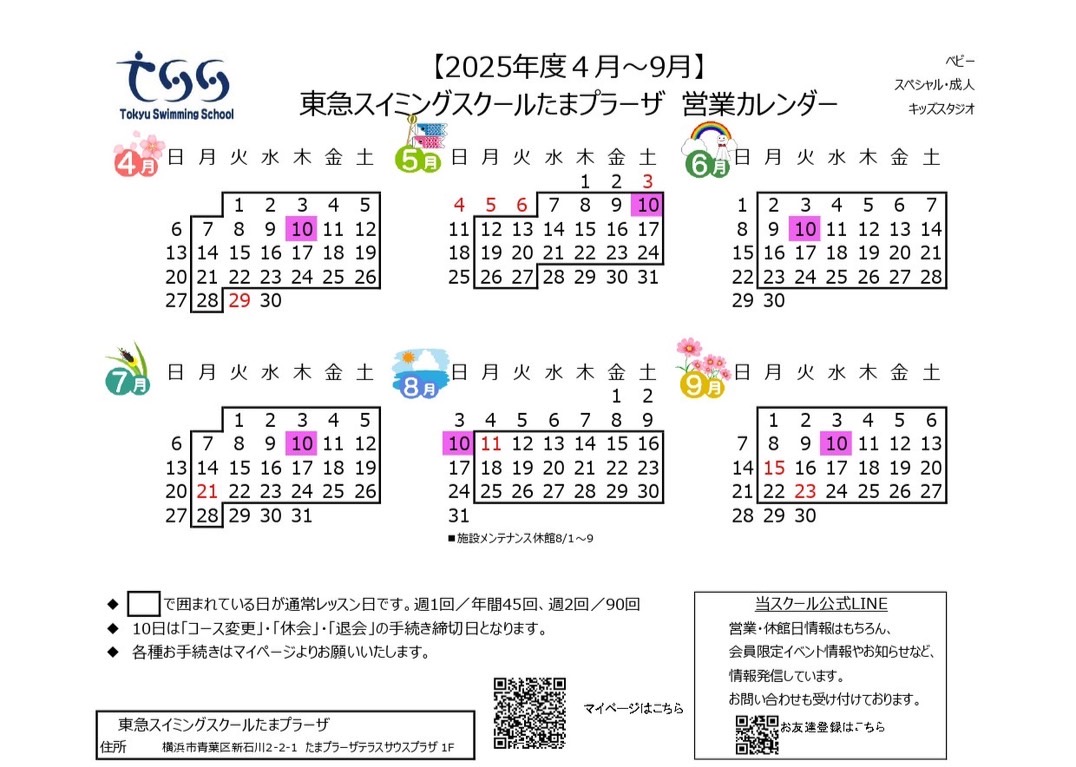 ▼25年4月~25年9月(ベビー・スペシャル・成人コース・スタジオプログラム)