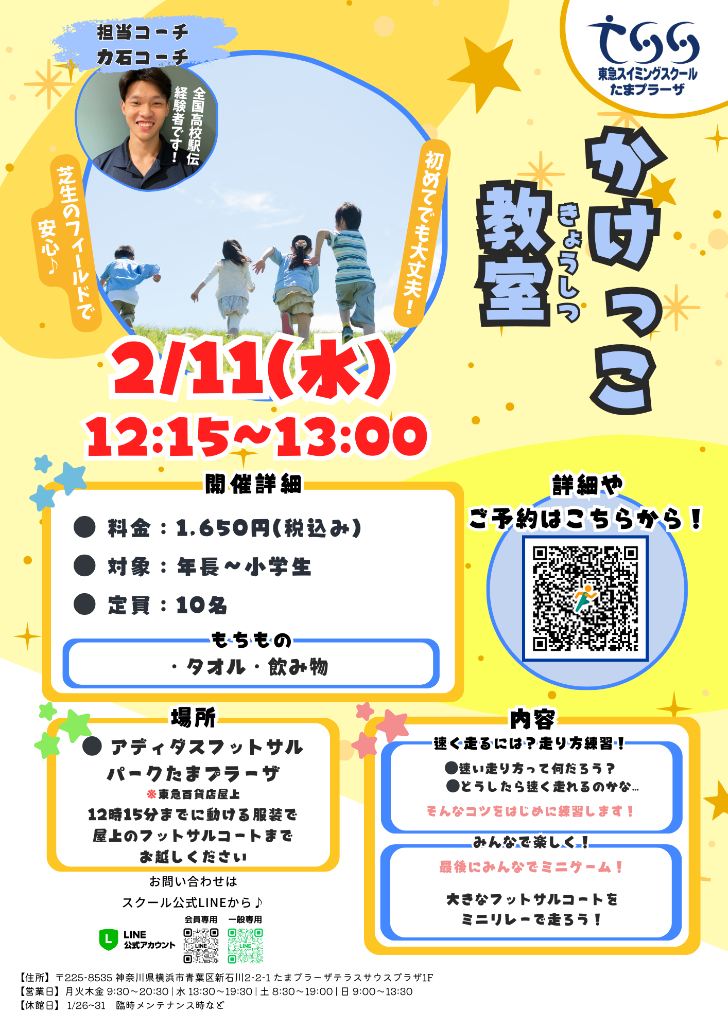 人工芝の上で楽しく♪2月11日(水)かけっこ教室実施!
