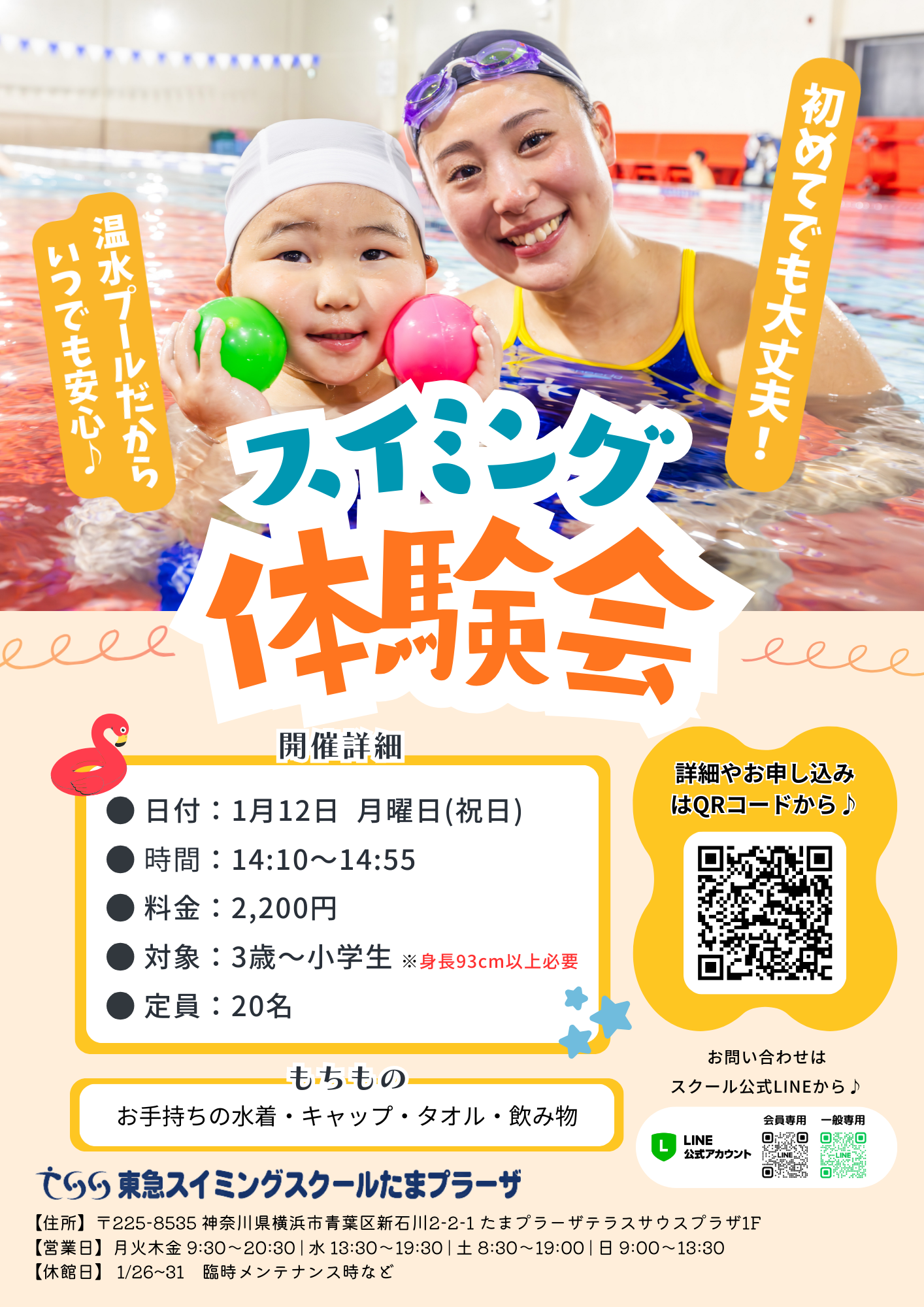 新年もスイミング体験会を開催!新しい習い事に挑戦!優しいコーチとプールで楽しもう♪