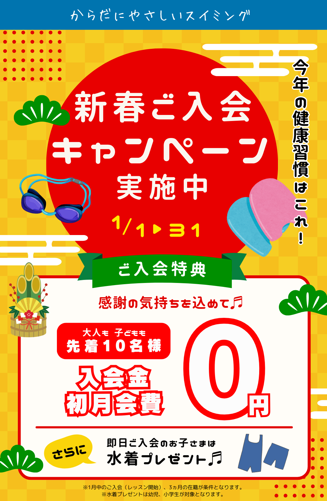 2026年の健康習慣はスイミングから始めませんか? 東急スイミングスクールたまプラーザでは、1月1日~1月31日まで「新春ご入会キャンペーン」を開催中!