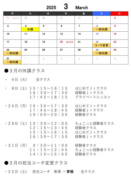 「3月のレッスンスケジュール」PDFファイルはこちらから