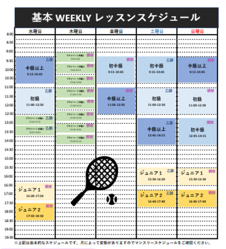 上記以外は以下の通常レッスン「Weeklyレッスンスケジュール」通りに行います。