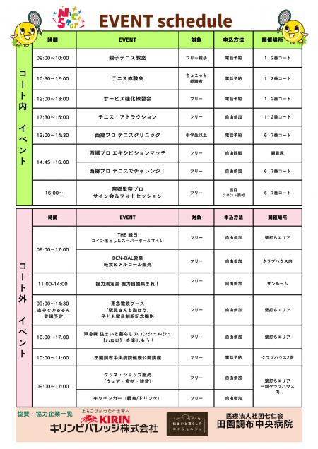 *テニスイベントはコートコンディションによって中止や変更となる場合があります。