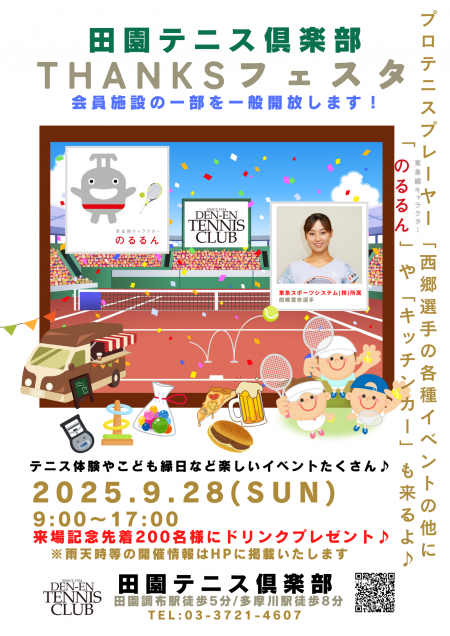 いつも田園テニス倶楽部をご利用いただき誠に有難うございます。